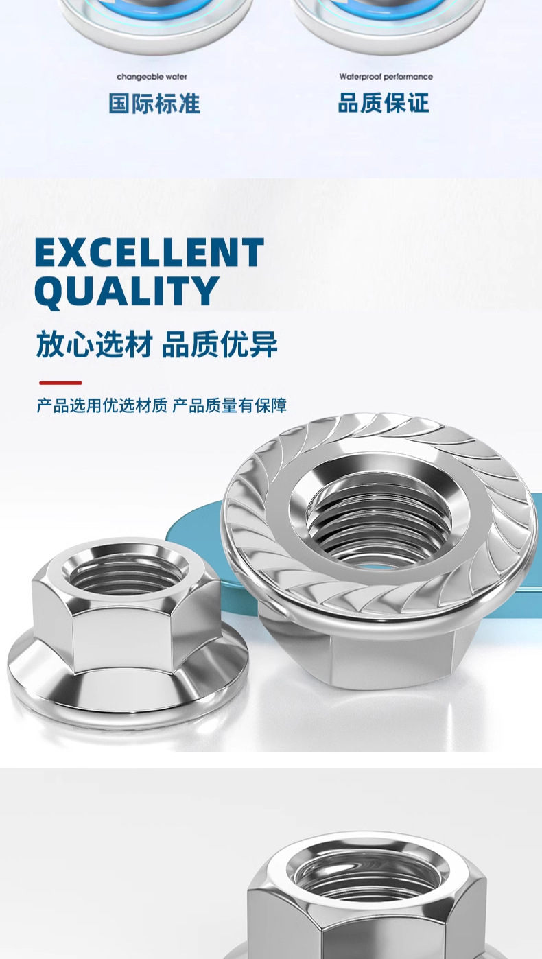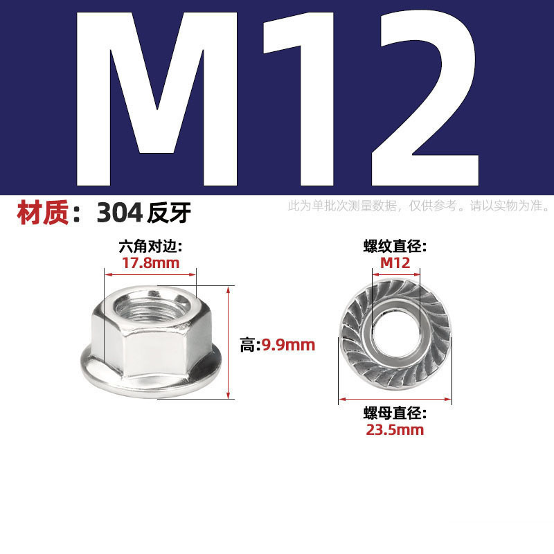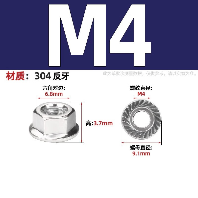 304 스테인레스 스틸 미세 치아/역 치아 플랜지 너트 DIN6923 너트 스크류 캡 M3M4M5M6M6M8M10M12