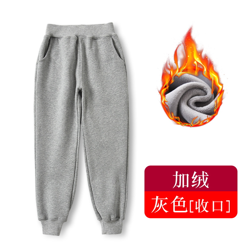 남자 '회색 스포츠 바지 기모 패딩 소녀 겨울 바지 어린이 초등학교 교복 바지 머리카락의 세대