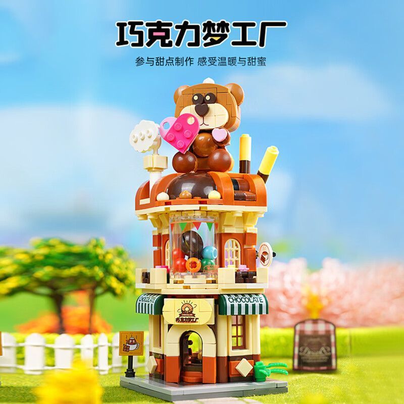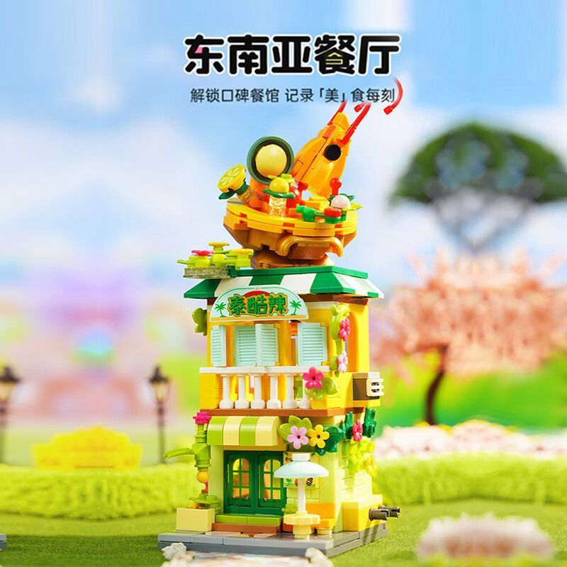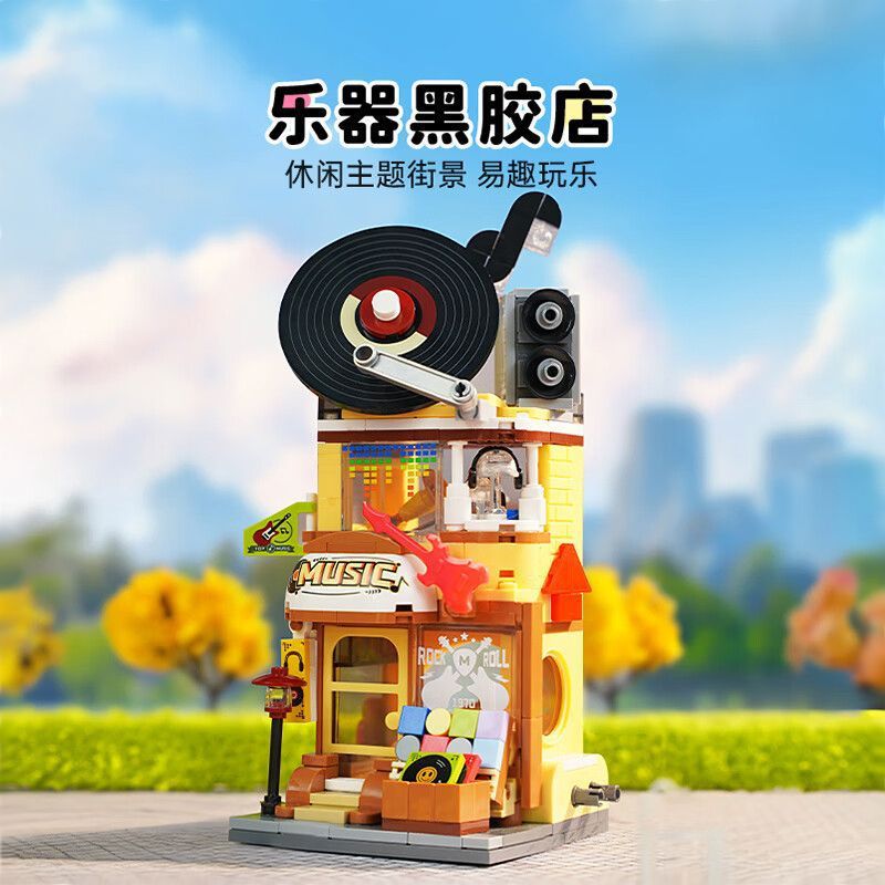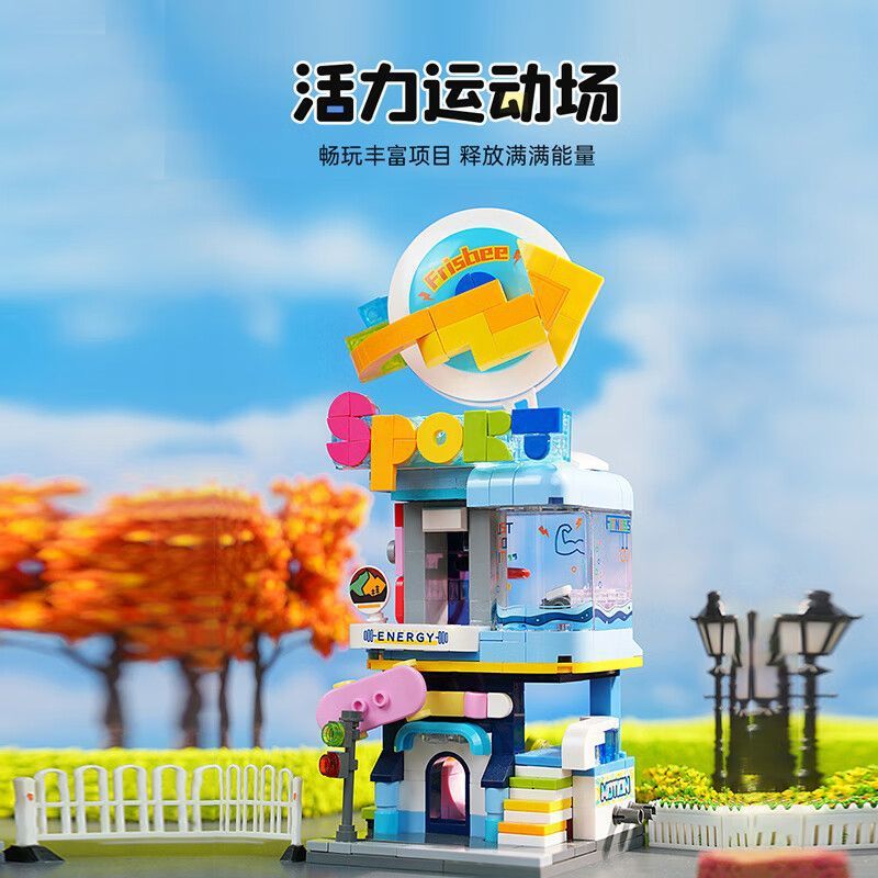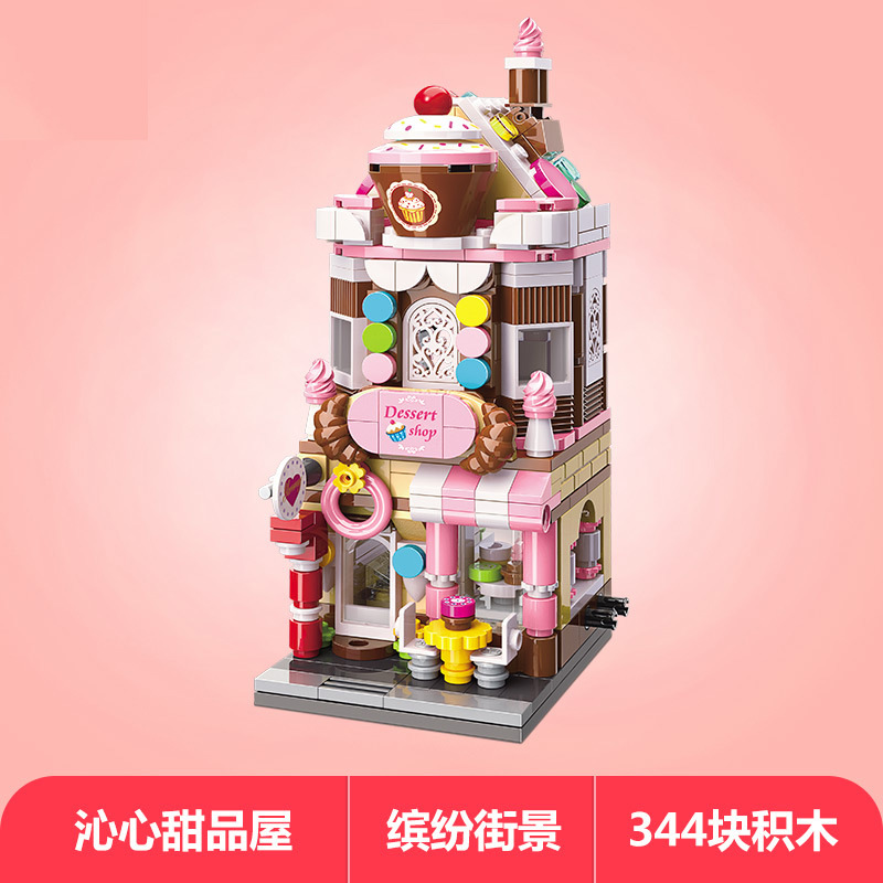 계몽주의 Keeppley 다채로운 스트리트 뷰 도시 건물 모델 작은 입자 소녀를위한 어린이 조립 장난감 선물스토어 가기