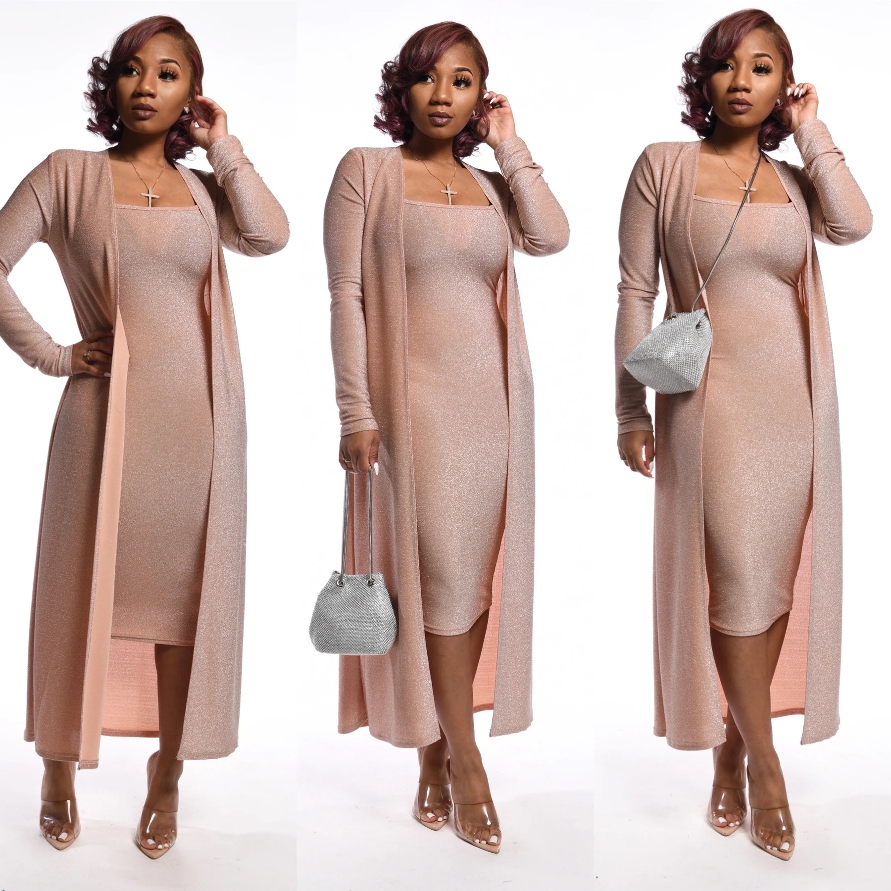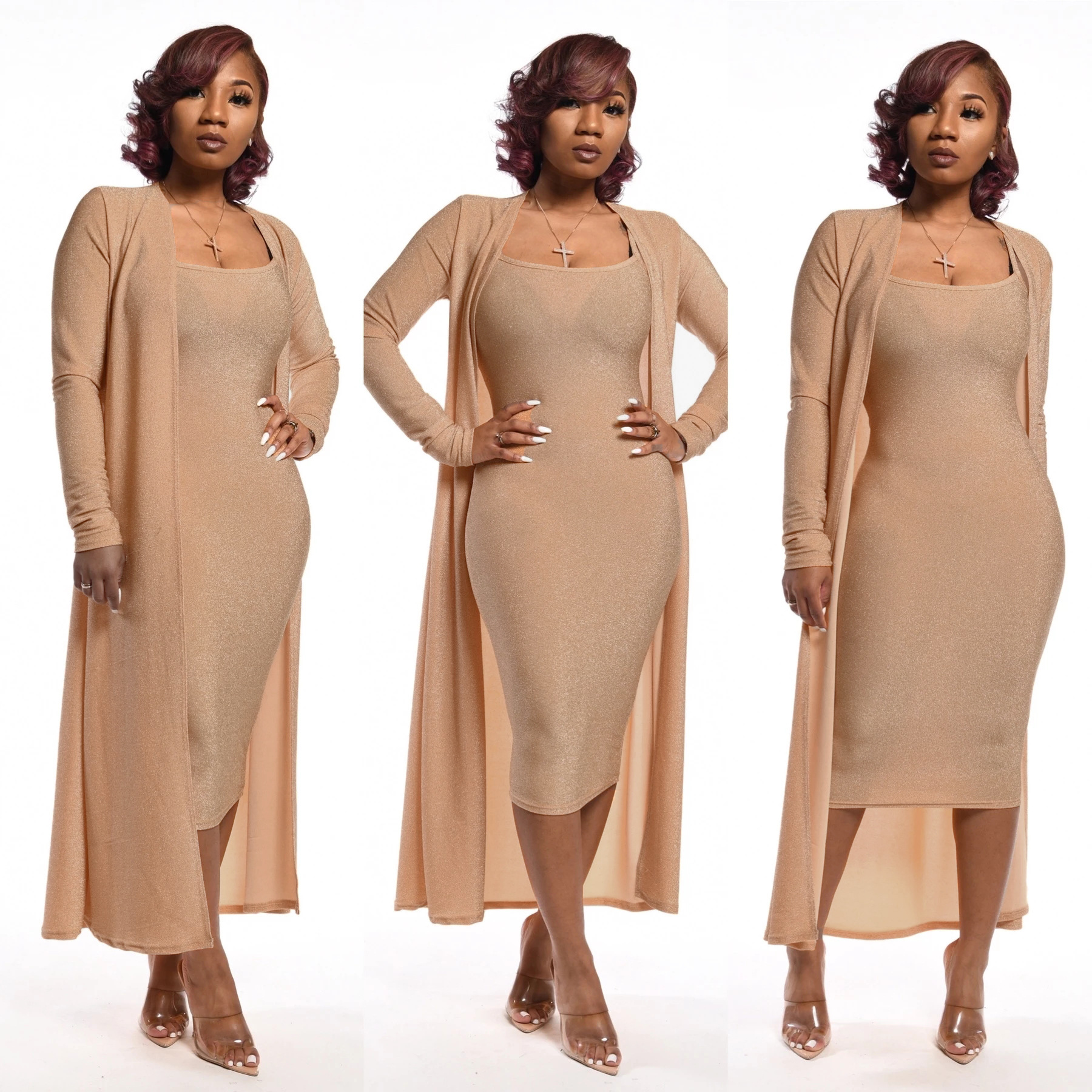YS207 아마존 뜨거운 여자의 유럽과 미국 실버 스트랩 원피스 긴 소매 유행 섹시한 투피스 세트