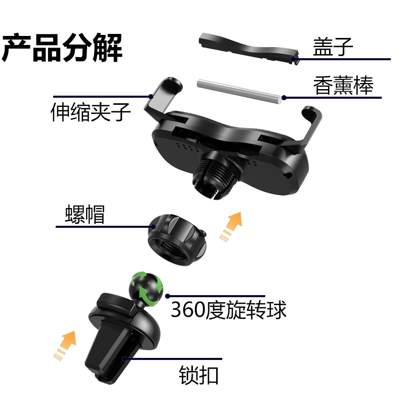 产品标题:跨境新款手机支撑架车载旋转手机支架创意出风口汽车手机导航支架