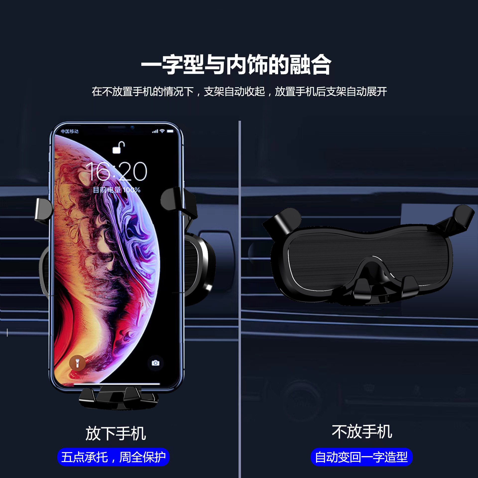 跨境新款手机支撑架车载旋转手机支架创意出风口汽车手机导航支架