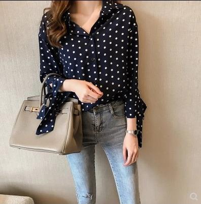 2021 이른 가을 플러스 사이즈 여자의 새로운 홍콩 스타일 폴카 도트 프린트 쉬폰 셔츠 여자의 긴 소매 탑 한국 스타일 베이스 셔츠스토어 가기