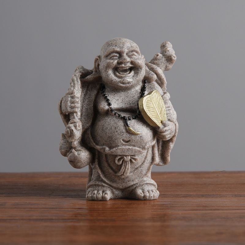 밍제 사암 수제 수지 공예 장식품 중국 미소 부처 미륵 부처 창조적 인 선물 금 장식