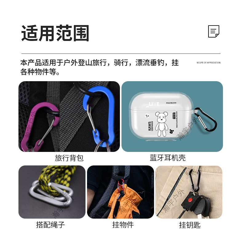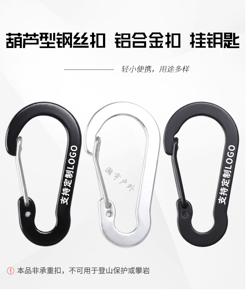No.5 스틸 와이어 조롱박형 등산 버클 알루미늄 합금 야외 등산 버클 깔린 스틸 와이어 버클 인쇄 로고 걸이 버클