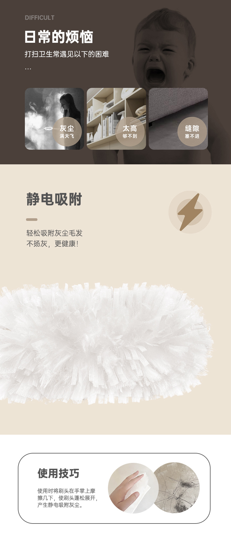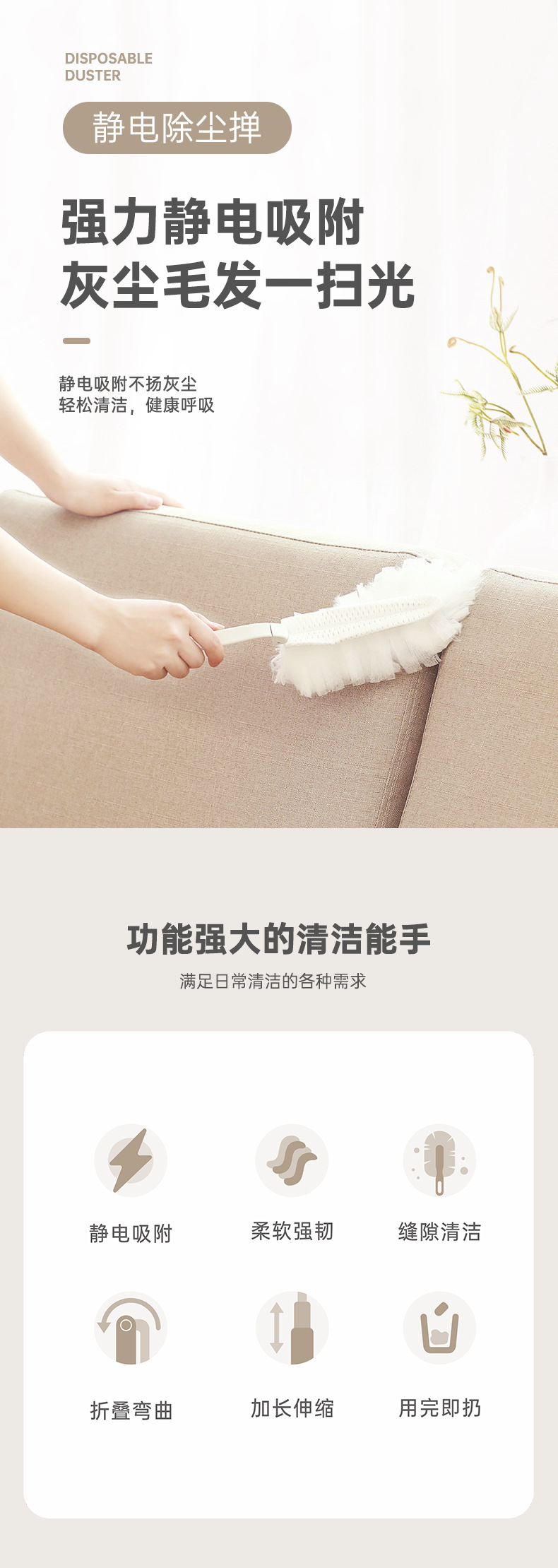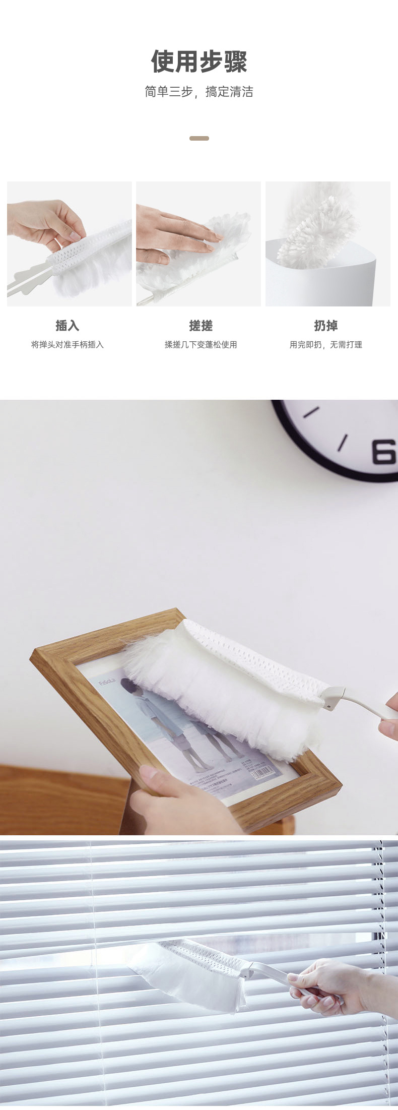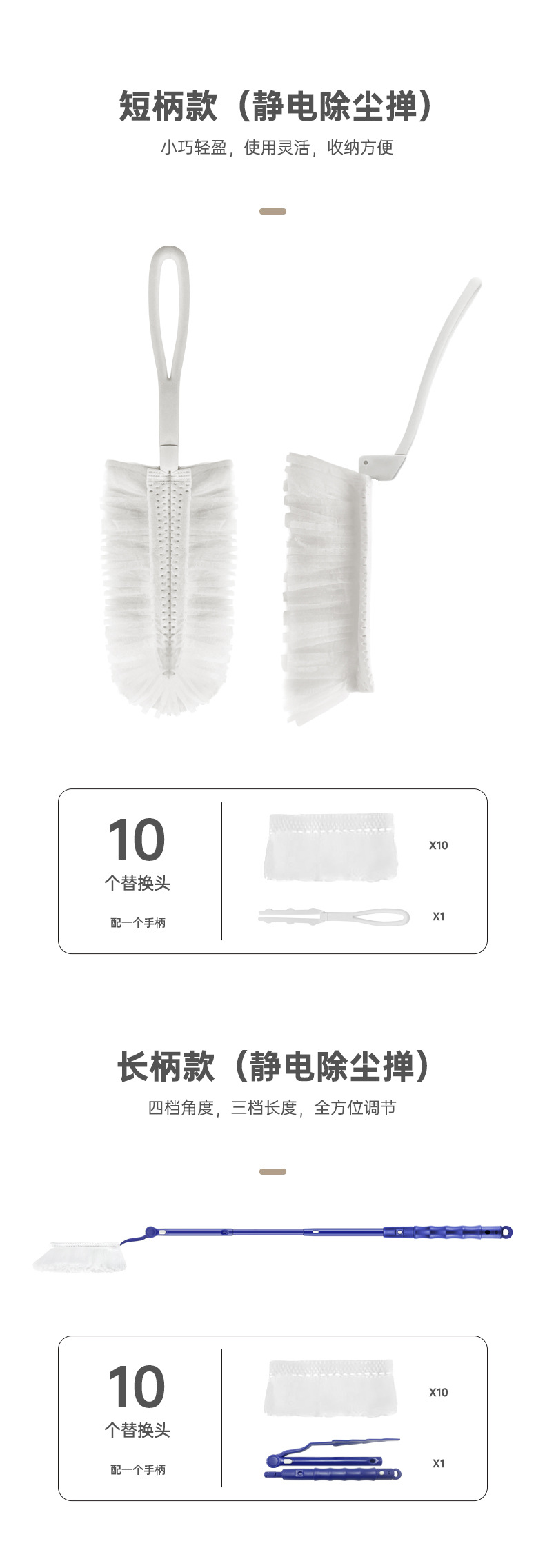• 흰색 먼지떨이 머리 10 개 + 흰색 짧은 손잡이 1 개