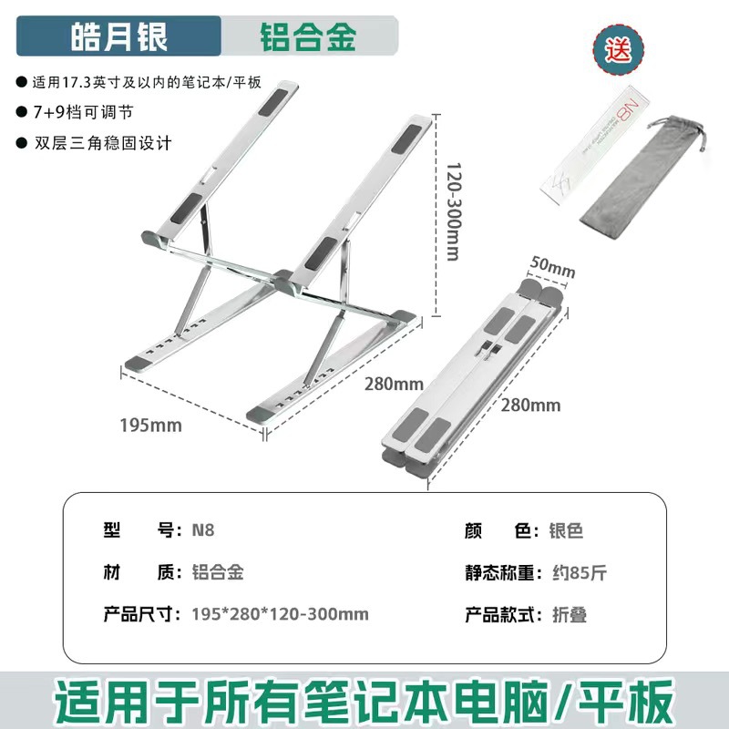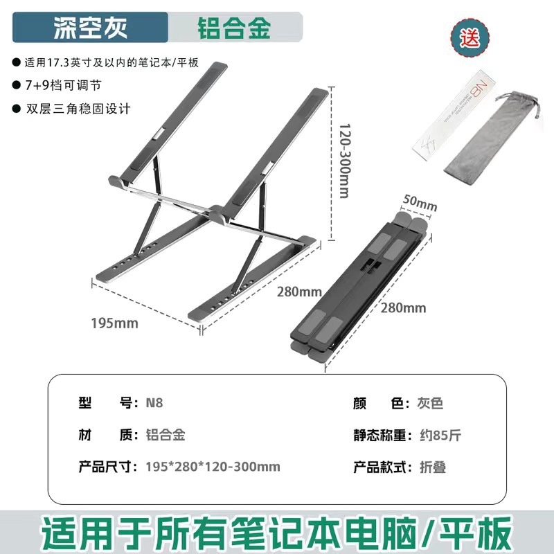 N8 컴퓨터 데스크탑 스탠드 이중 레이어 높이 조절 알루미늄 노트북 스탠드 수직 금속 리프팅 접이식 스탠드스토어 가기