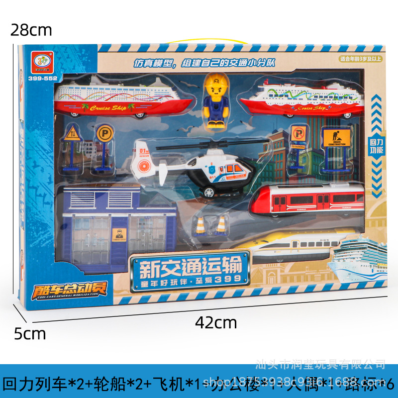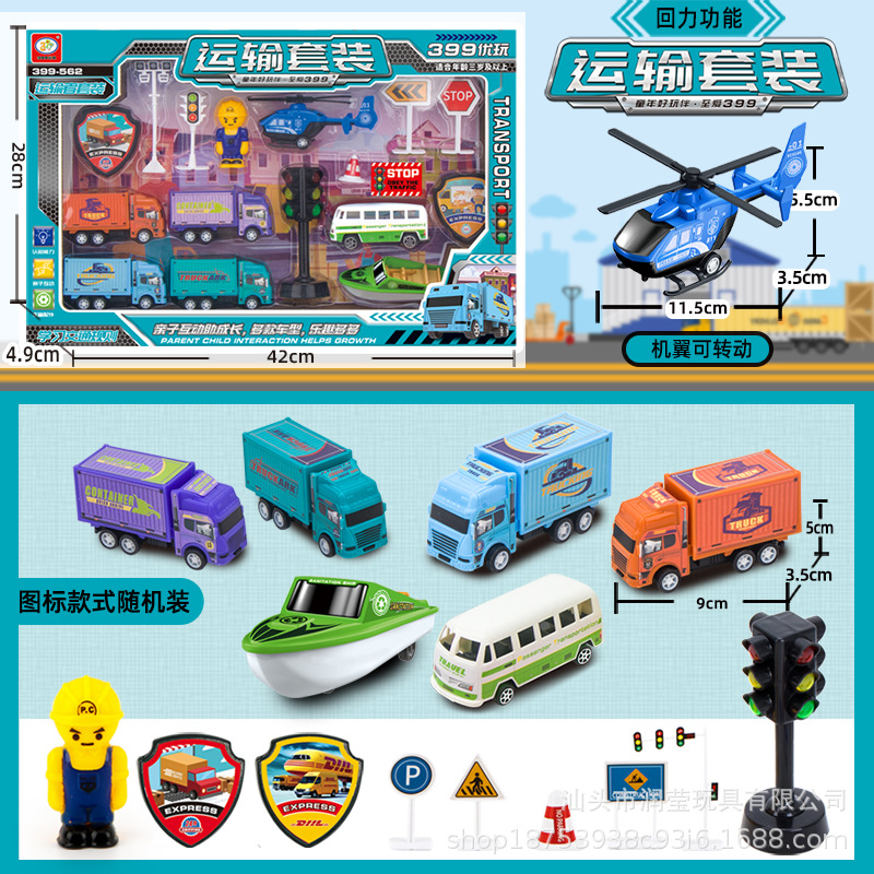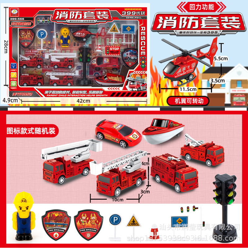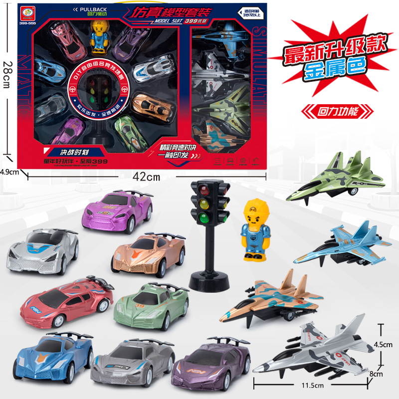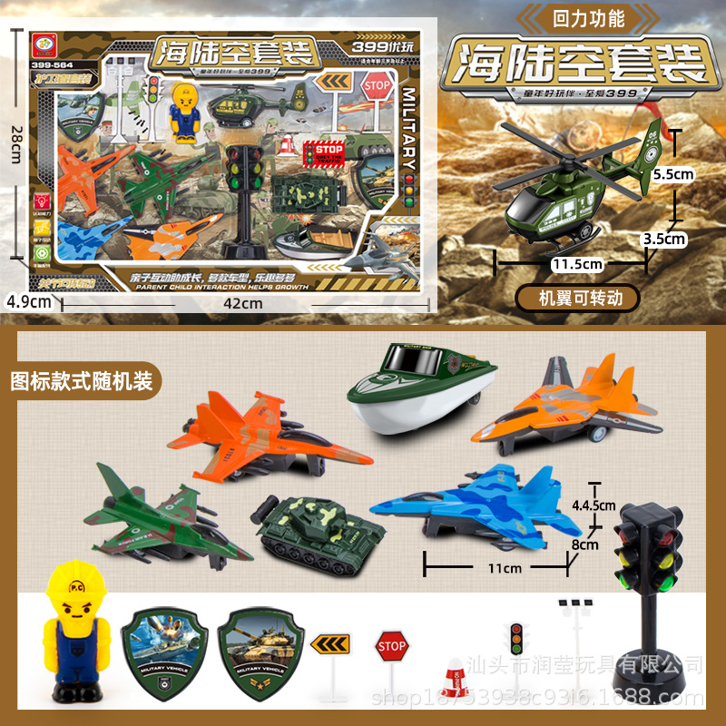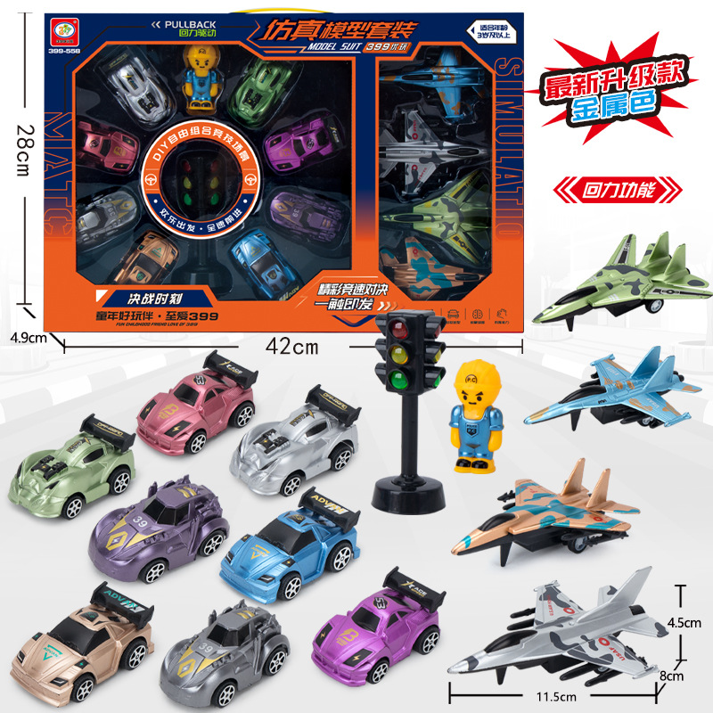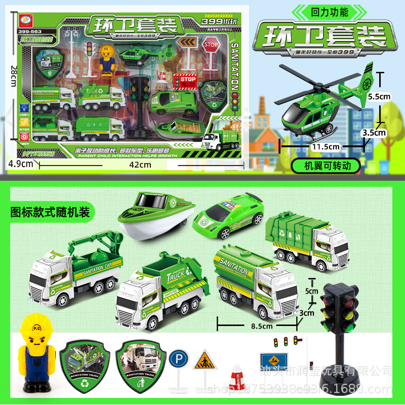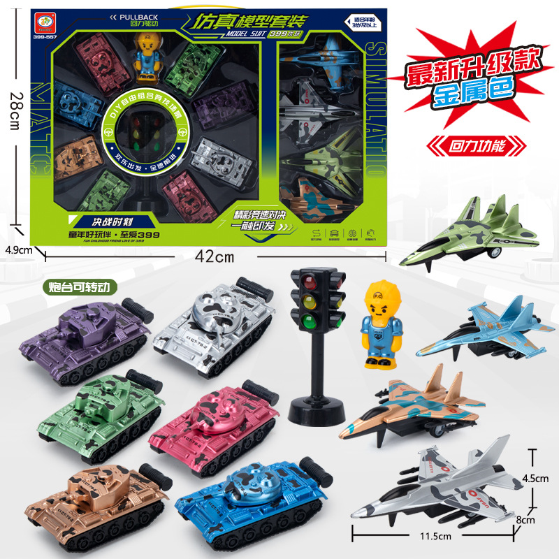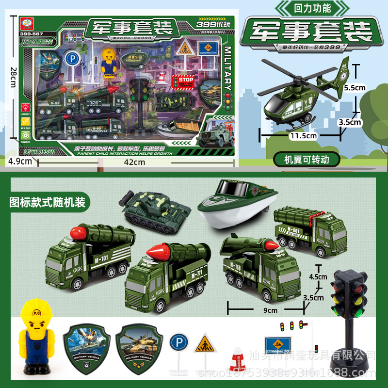 地摊热卖儿童回力车大号工程车玩具礼盒套装男孩军事场景汽车模型