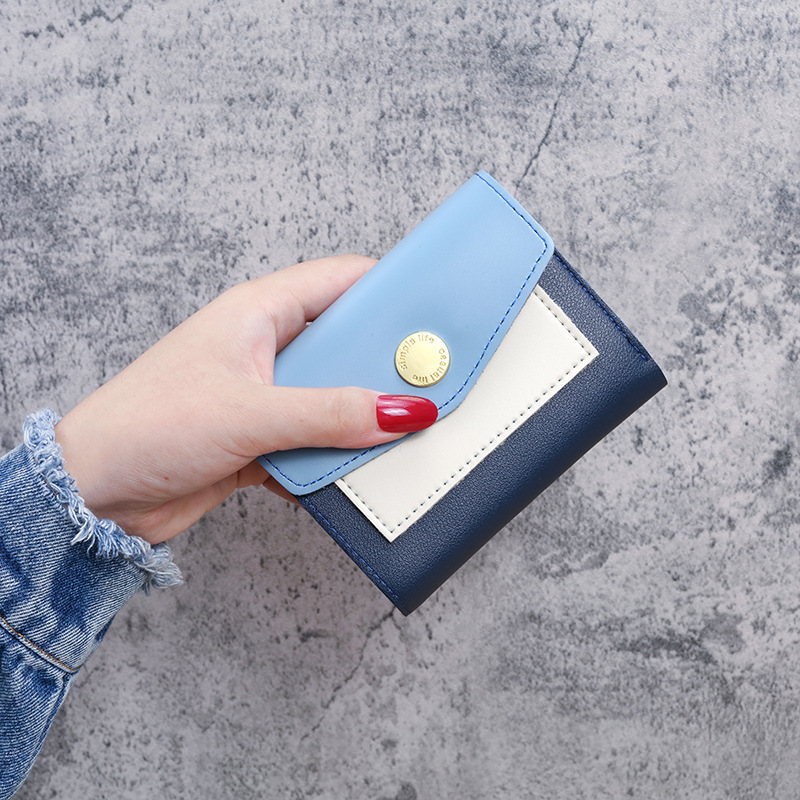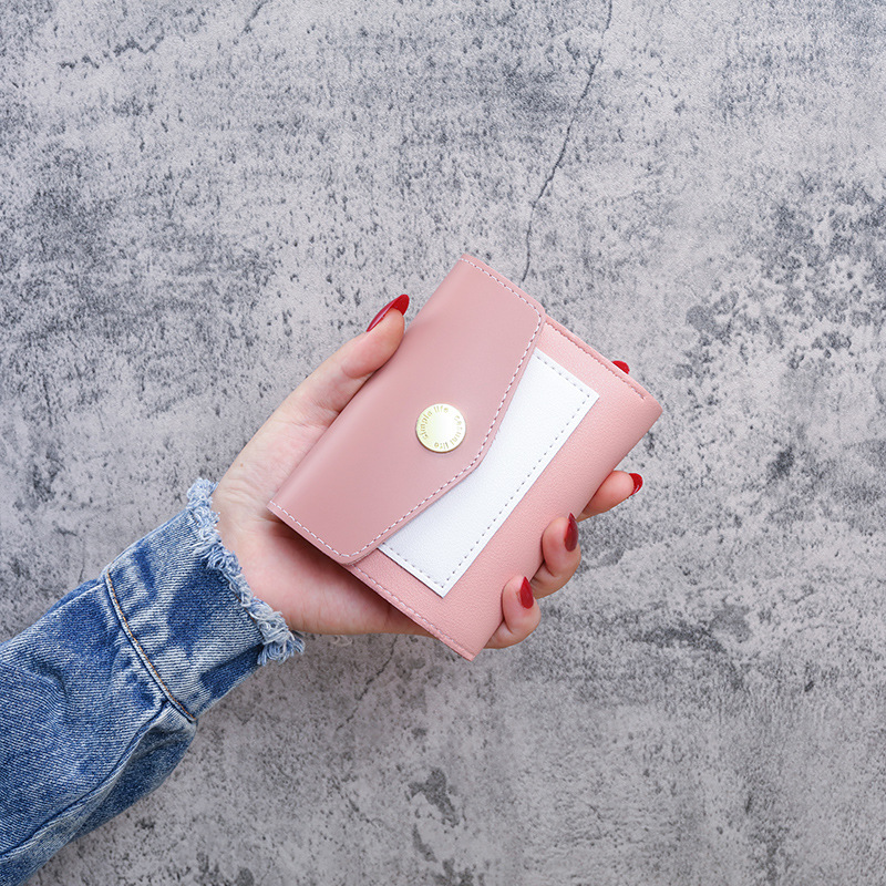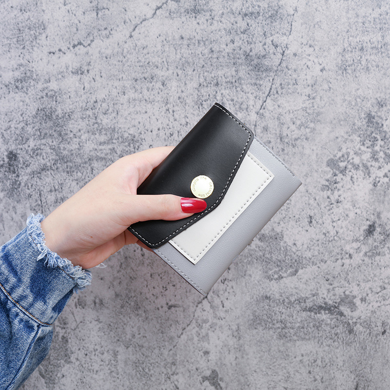 새로운 스타일의 여성용 지갑, 짧은 한국 스타일 패션 학생용 70% off 배색 버클 동전 지갑 카드 지갑 도매스토어 가기