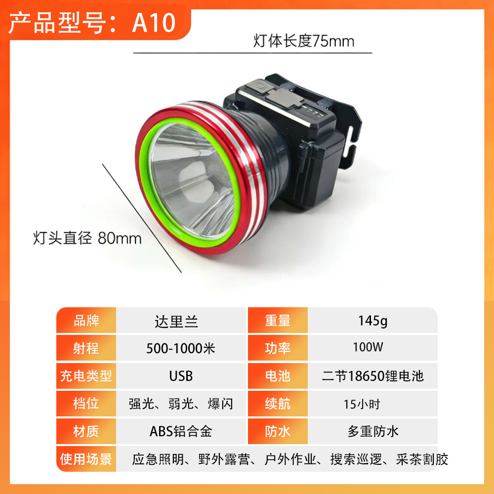 • 하이라이트 방수 큰 머리 이중 전기 A10-80W [보내기 충전기, 헤드 로프] 내구성 14 시간