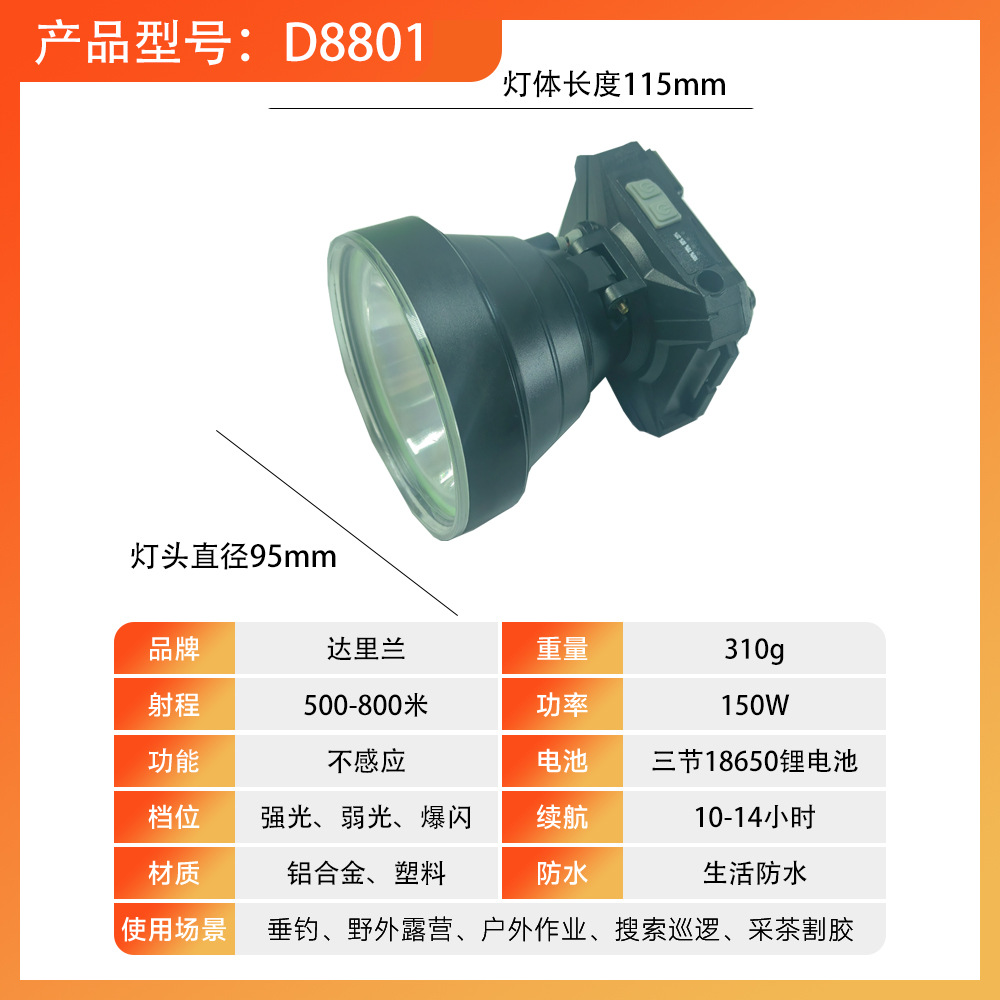 • D8801-150W [무료 충전 케이블 및 헤드밴드] 배터리 수명 14시간