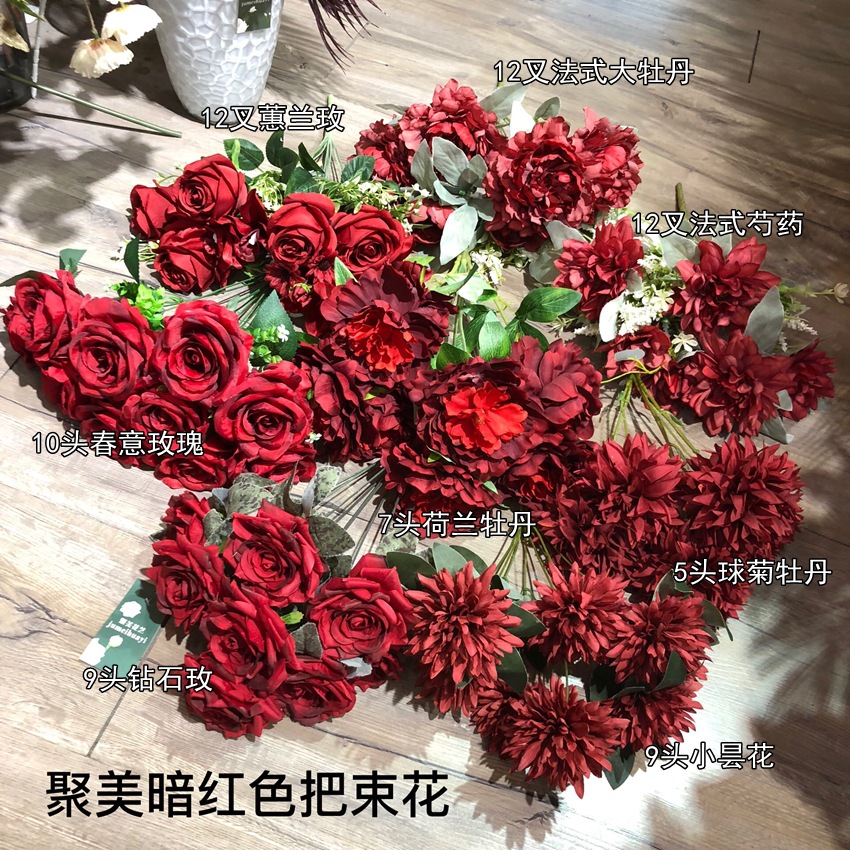 6头玛丽绣球 有大红和暗红可选 这款绣球1个花头有36个花瓣,花瓣较大,花头比较立体 有型,没有带叶子