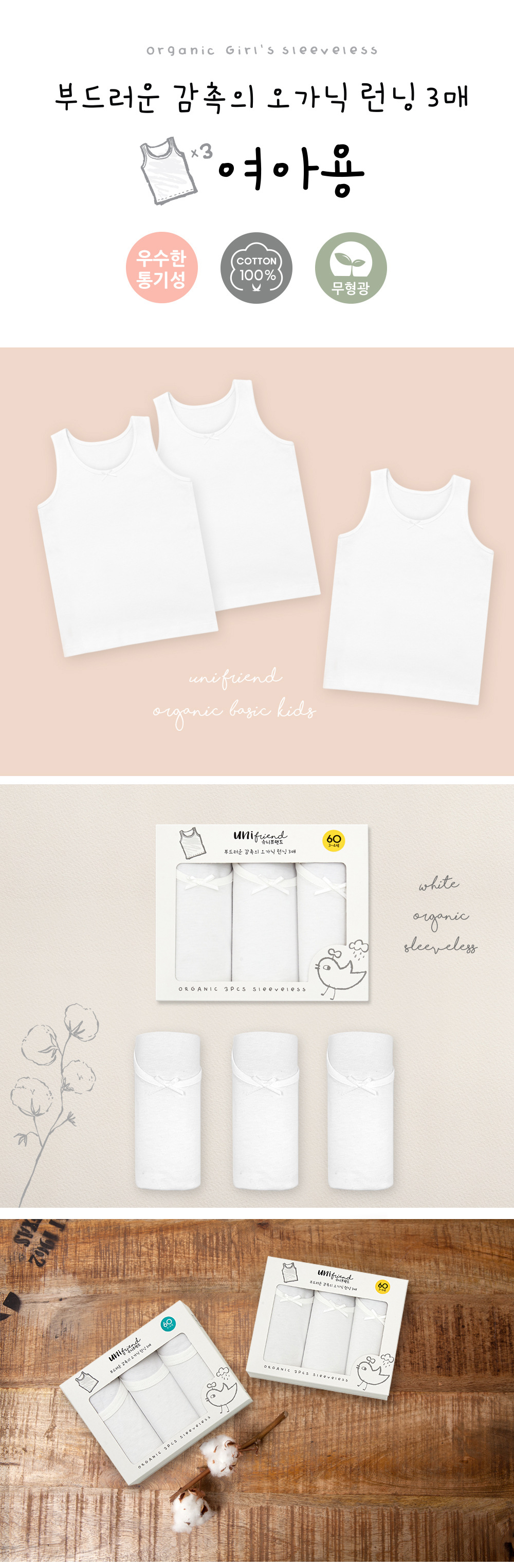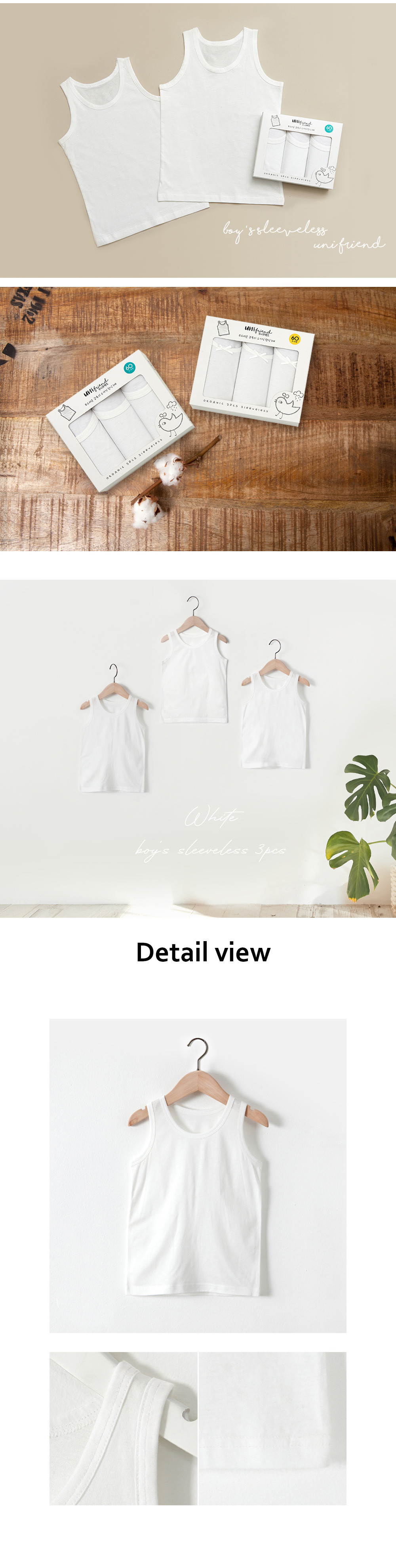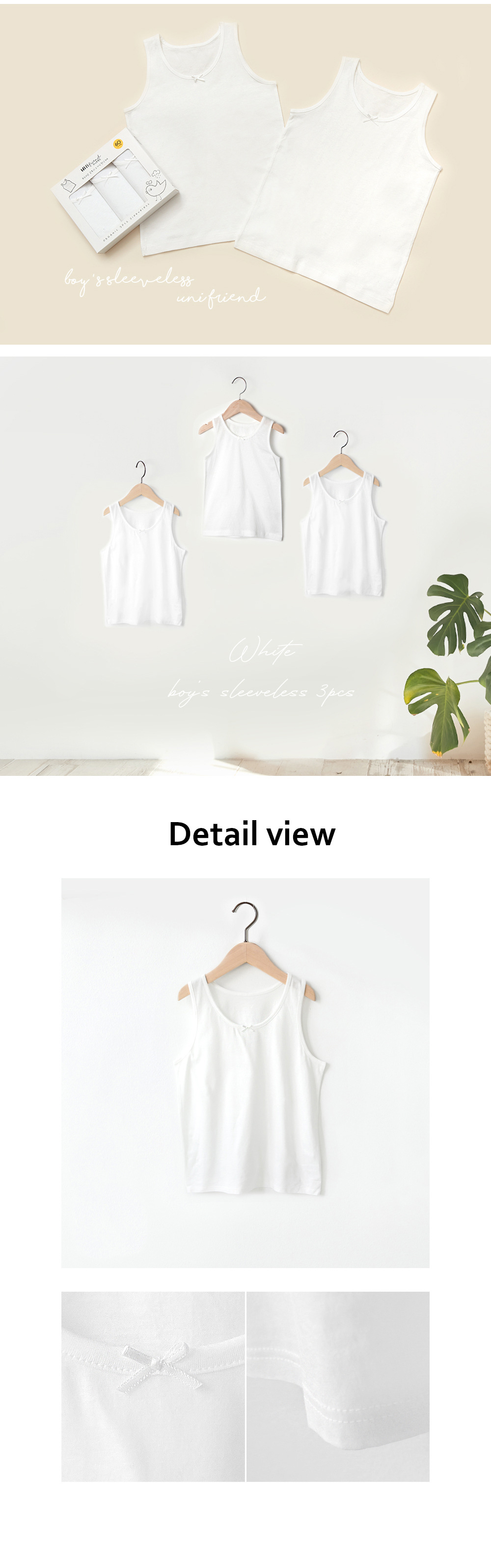 • 소년 박스형 흰색 조끼 (3 장 상자)