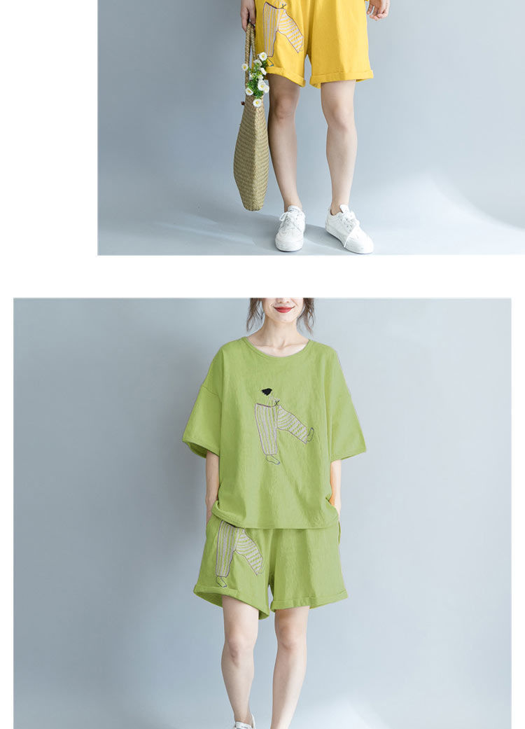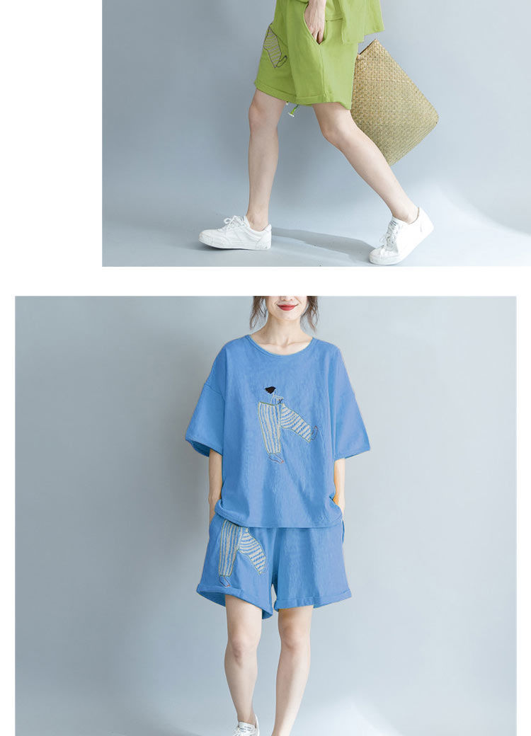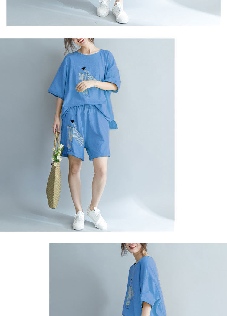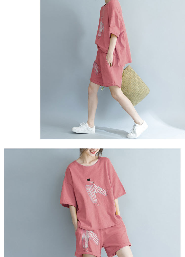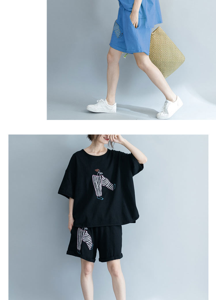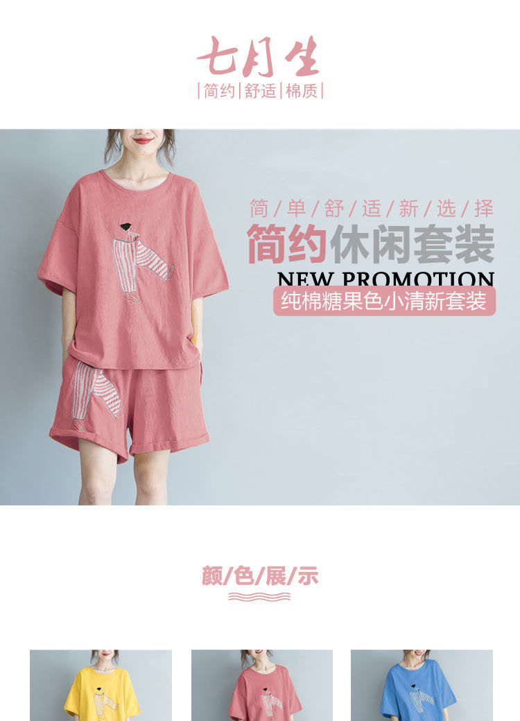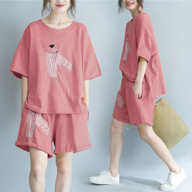큰 사이즈 바지 세트 여름 새로운 크로스보더 여성용 반팔 티셔츠 루즈한 와이드 레그 반바지 캐주얼 통통녀 투피스 세트스토어 가기