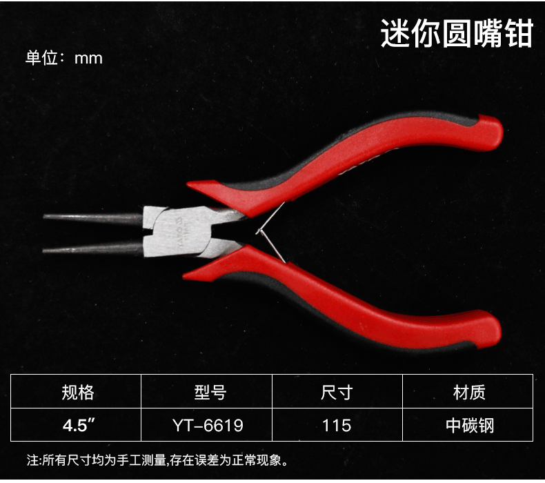 • 4.5(115mm) 미니 라운드 노즈 펜치 YT-6619