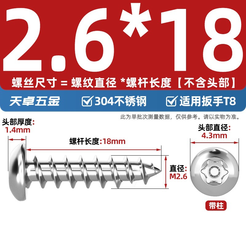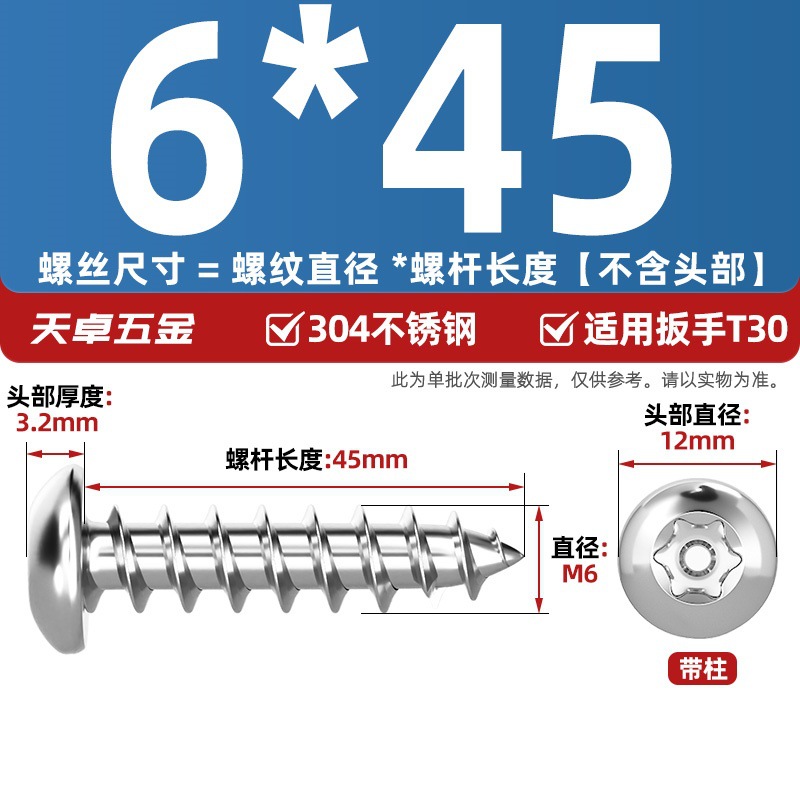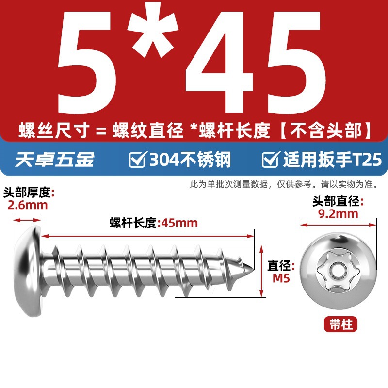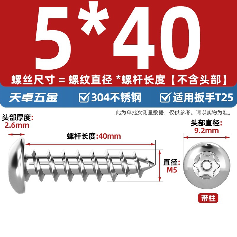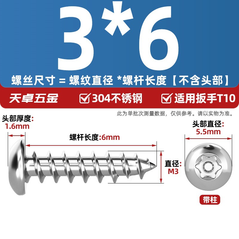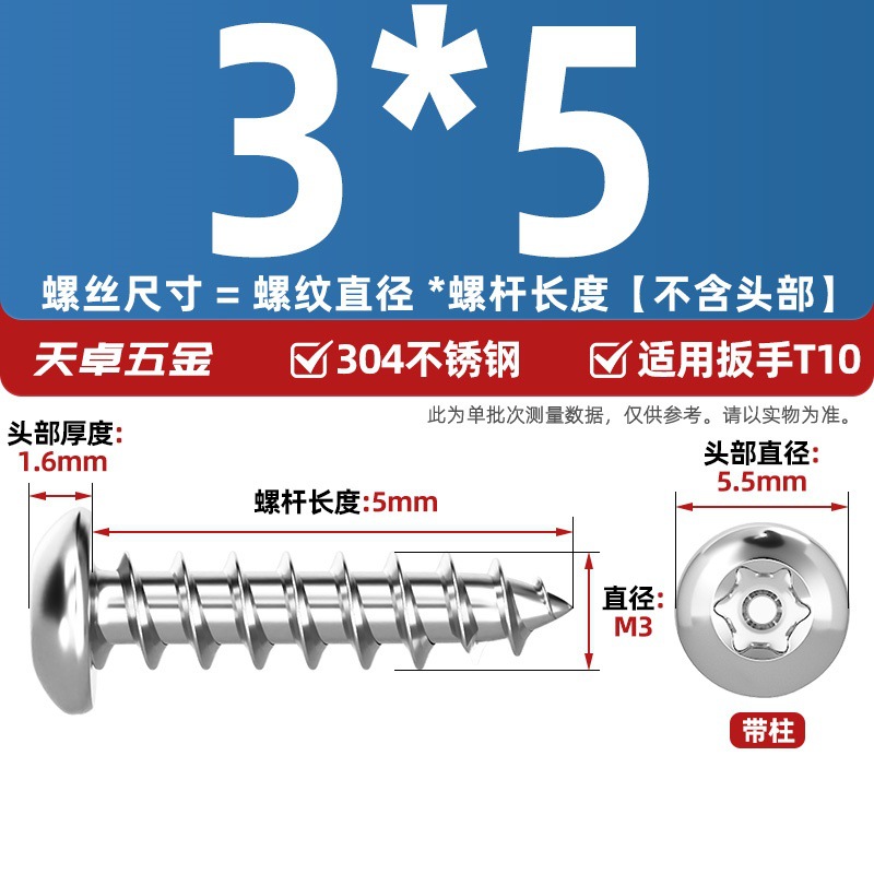 304 스테인레스 스틸 팬 헤드 라운드 헤드 매화 컬럼 바늘 코어 도난 방지 셀프 태핑 목재 나사 MM2M2.6M3M4M5M6