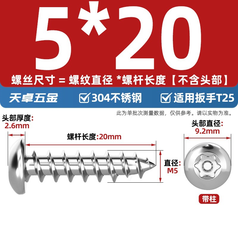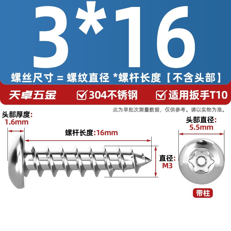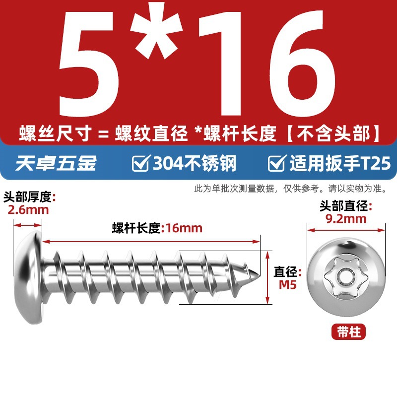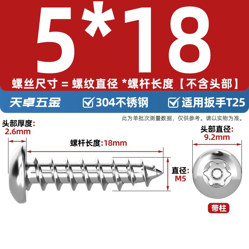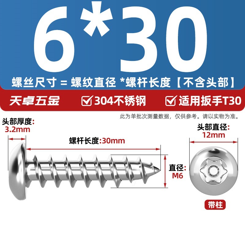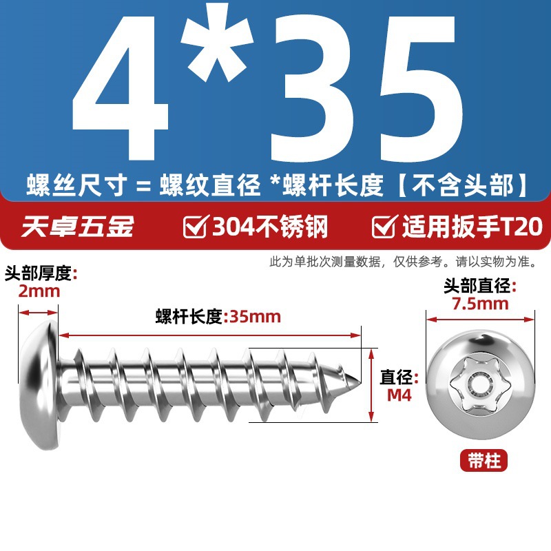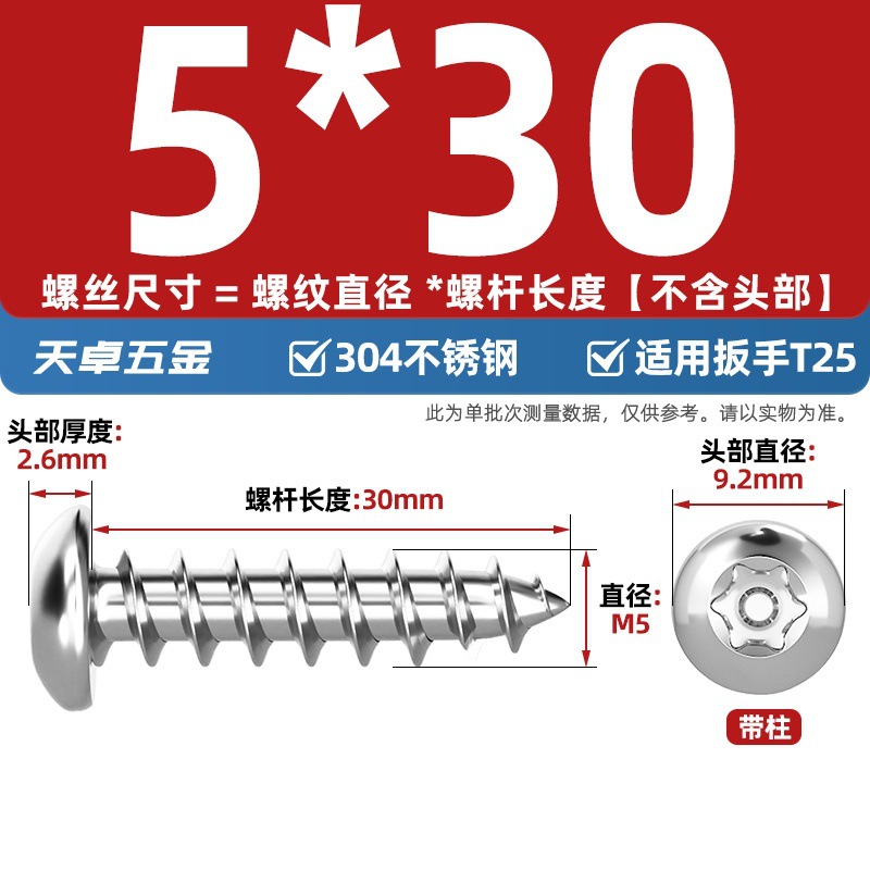 304 스테인레스 스틸 팬 헤드 라운드 헤드 매화 컬럼 바늘 코어 도난 방지 셀프 태핑 목재 나사 MM2M2.6M3M4M5M6