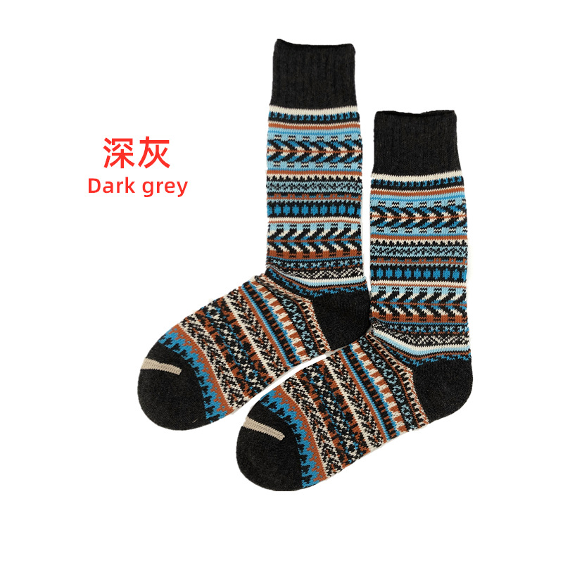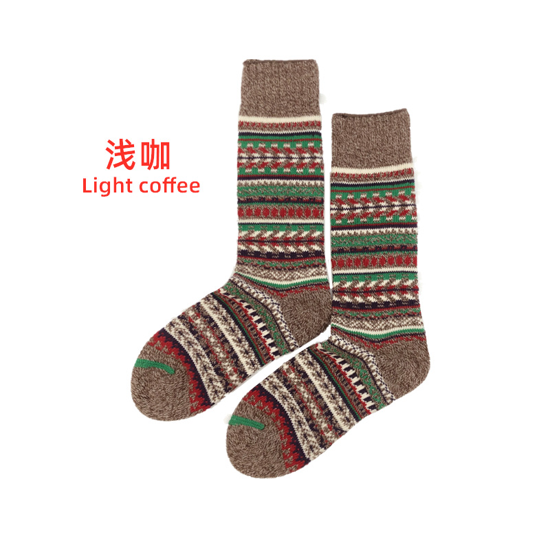 冬季新款,民族风复古粗线个性咔叽潮袜,日系原宿图腾高邦色缝头男袜,袜头采用不同颜色手工缝头处理,工艺更讲究,袜口采用尼龙包边设计,更好防止橡筋外露现象,除了袜子的功能,其特点是做服装搭配,袜子非常厚实,保暖性好,弹力大,非常适合秋冬季不知道穿什么袜子出门的潮人们,全部独立腰封挂钩,实际码数:38-43