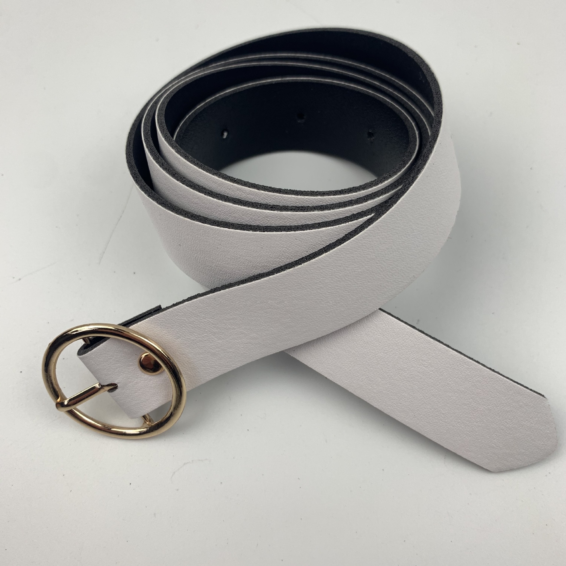 产品介绍: 腰带品名:圆扣仿皮腰带 产品材质:仿皮+金属圆扣 产品规格:宽度2.3cm 长度100cm 适用范围:淘宝礼品 服装搭配等 此款产品也可以根据客户需要的颜色和规格来定 产品图片
