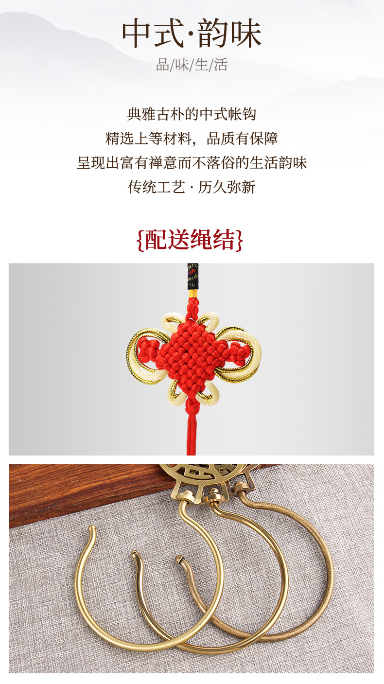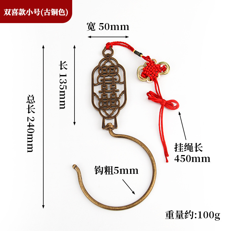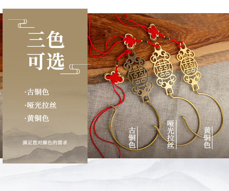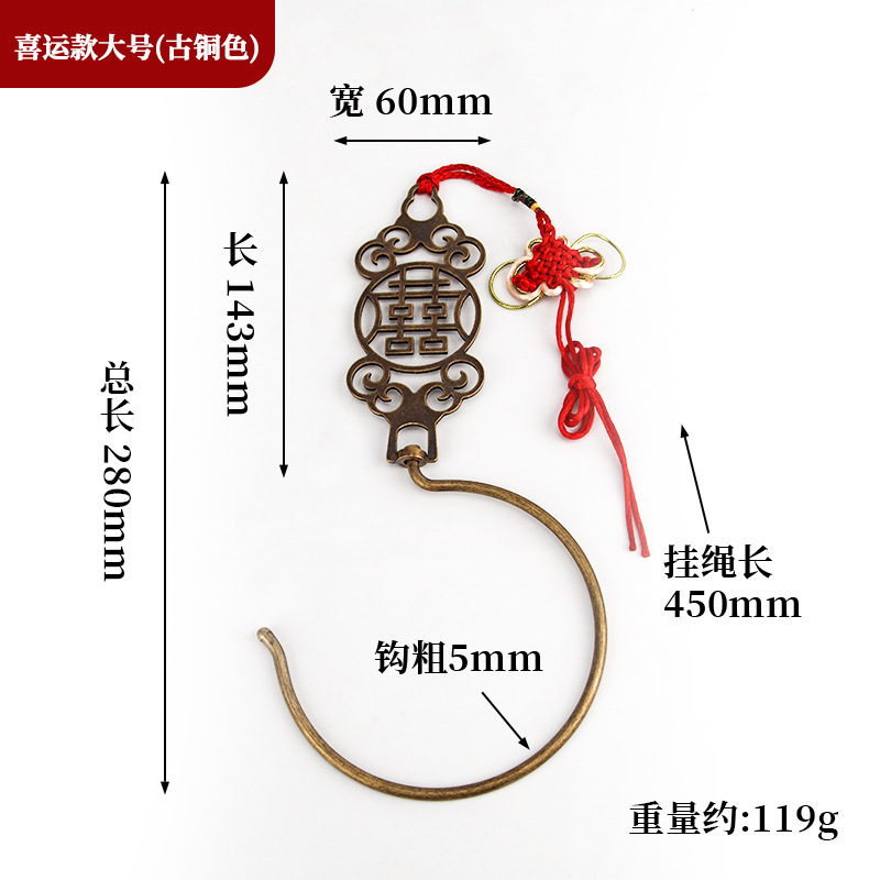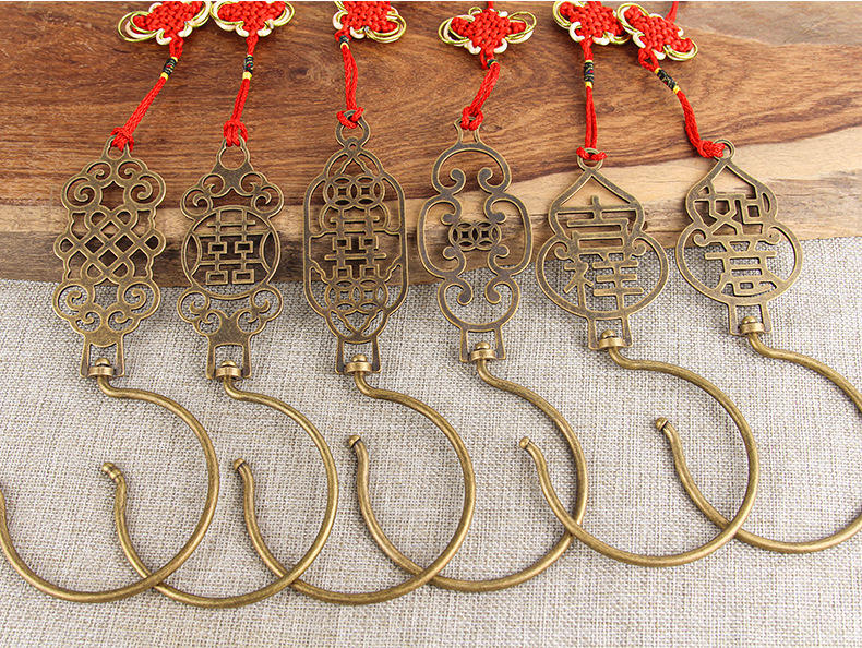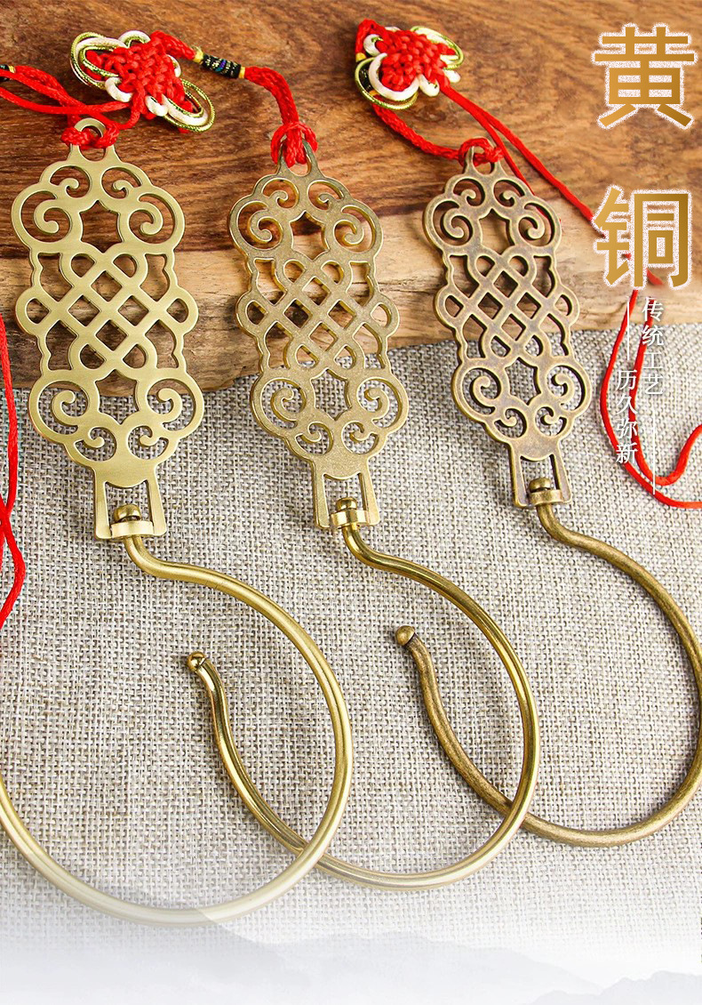 명청 시대 앤티크 스타일 황동 이중행운문 장식용 문걸이 창문걸이 침대 커튼 걸이 가정 장식용 모기장 걸이