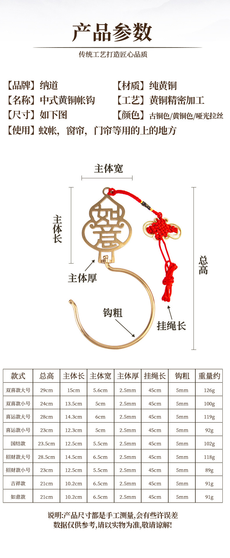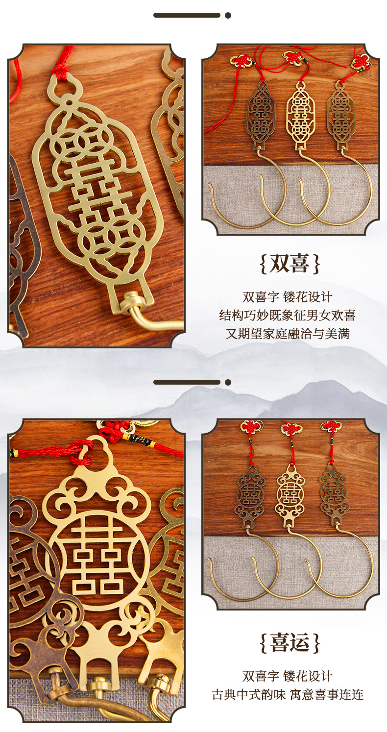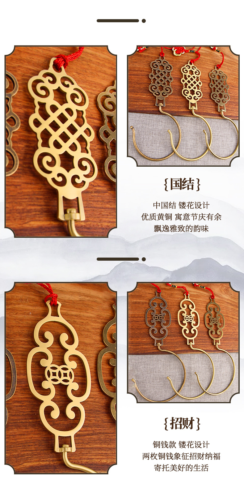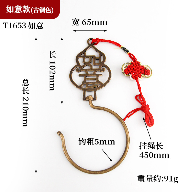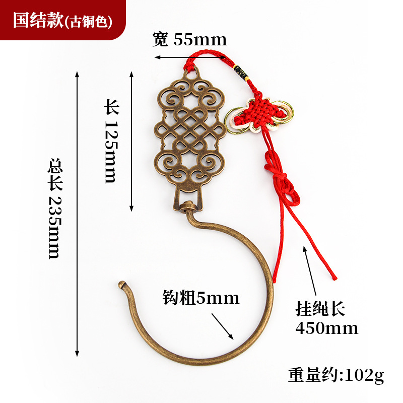 명청 시대 앤티크 스타일 황동 이중행운문 장식용 문걸이 창문걸이 침대 커튼 걸이 가정 장식용 모기장 걸이