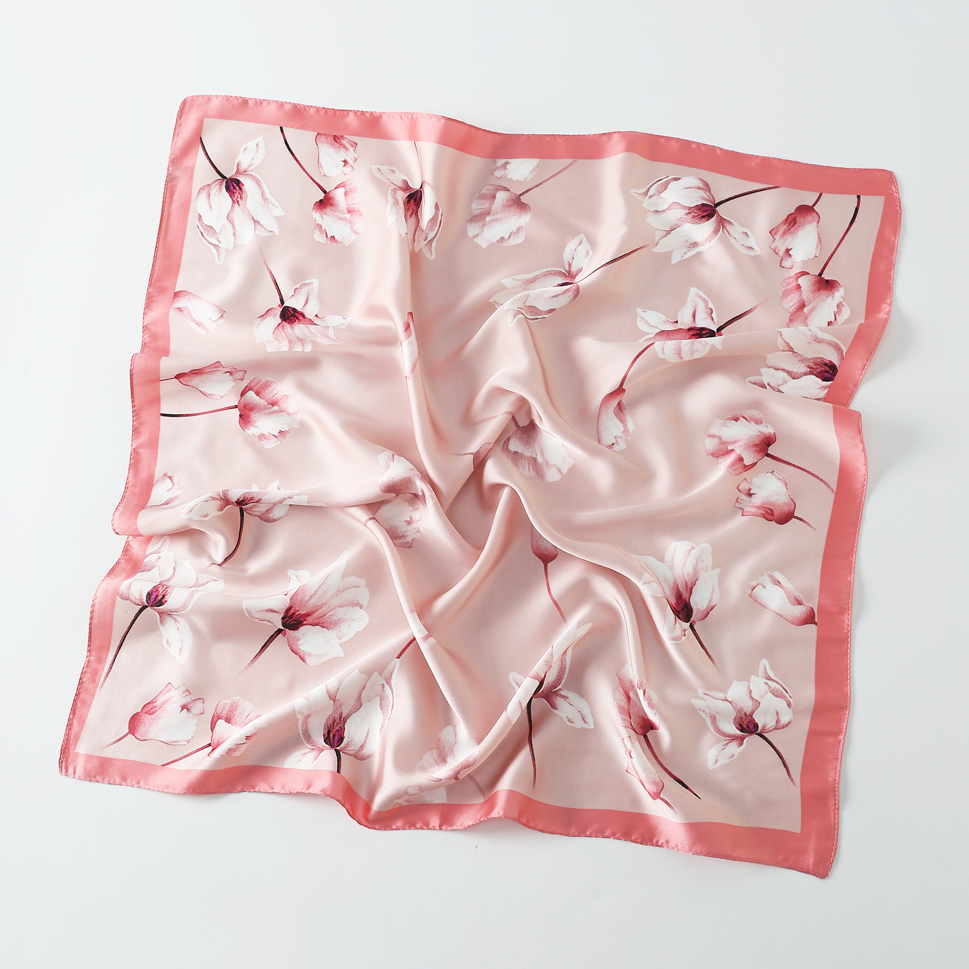 맞춤형 브랜드 로고가 인쇄된 실크 스카프, 여성용 사각 스카프, 뽕나무 실크 스카프, 머리띠, 리본, 재고 있음스토어 가기