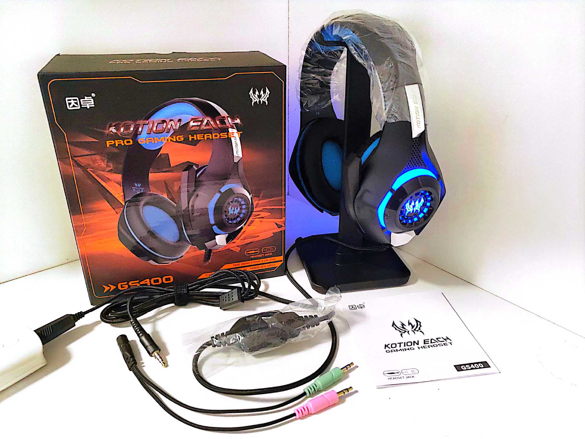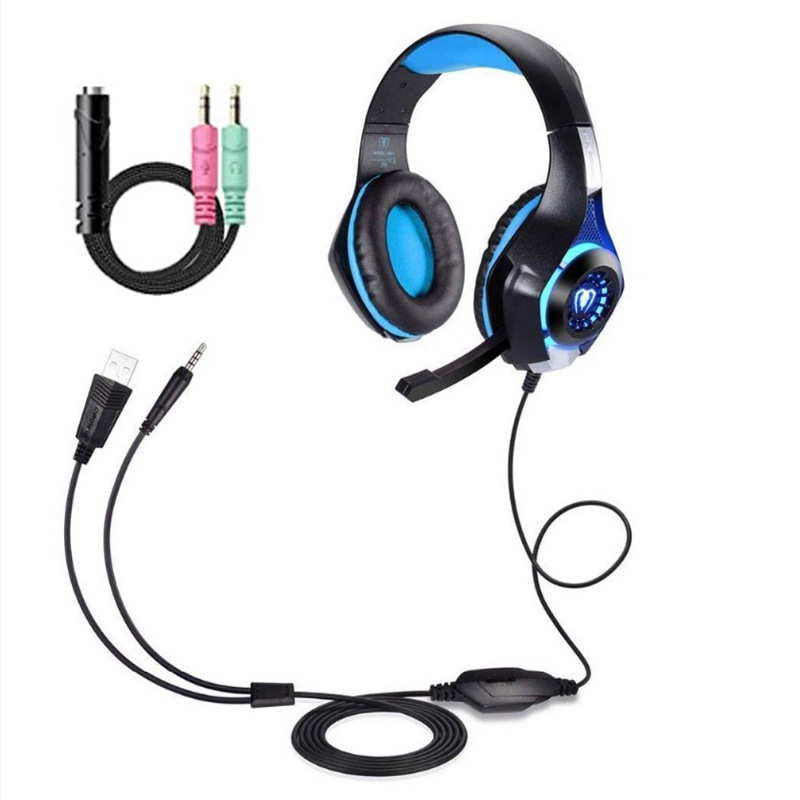 PS4游戏耳机,带有麦克风的有线PC游戏耳机,3.5mm过耳低音立体声,控制噪音,用于Xbox One S的彩色LED灯,Nintendo开关,PC,笔记本电脑,平板电脑,手机