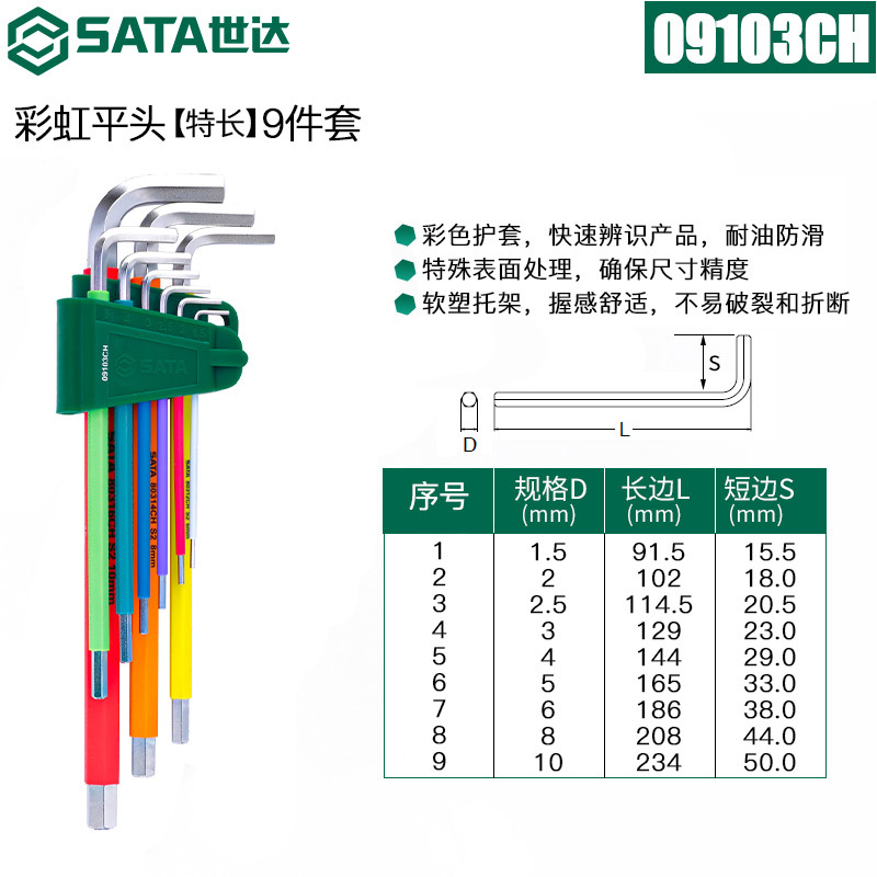 시다 공구 렌치 세트 긴 볼 헤드 육각 소켓 색 육각 09101CH 9 조각