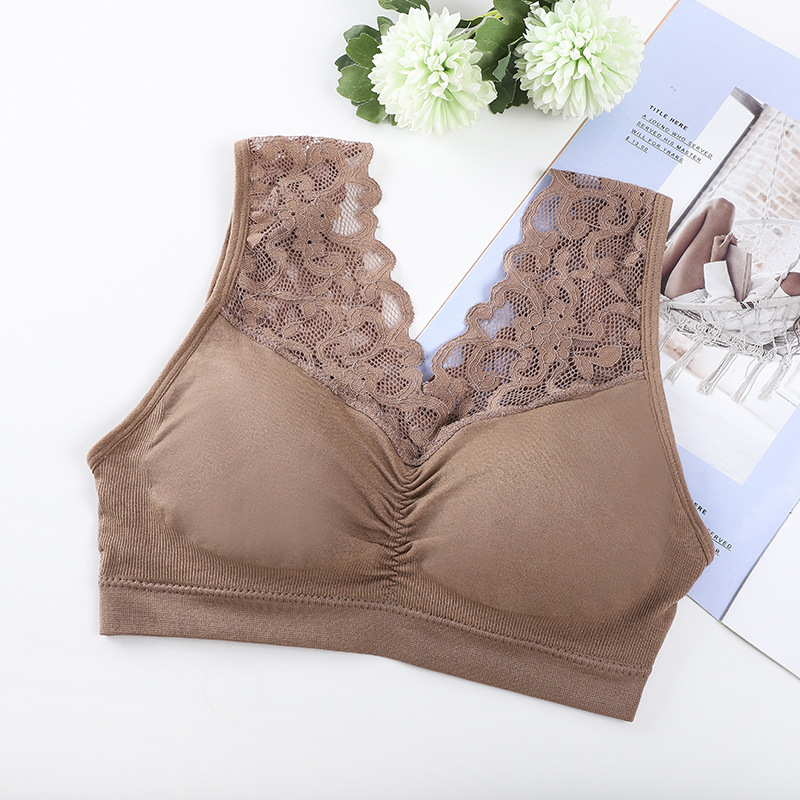 1931 레이스 가슴 포장 원활한 아름다운 등 캐미솔 조끼 여성의베이스 안티 러닝 라이트 밴드 가슴 패드 수면 브라 스포츠