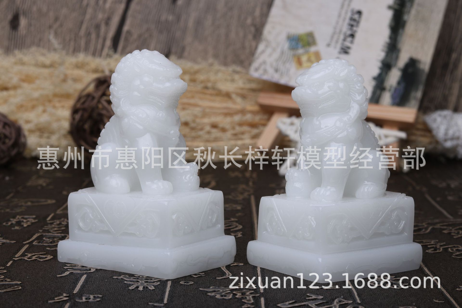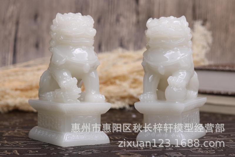 • 스몰 사이즈 흰색 옥 사자 긴 4.5 폭 4 높이 7 cm의 한 쌍