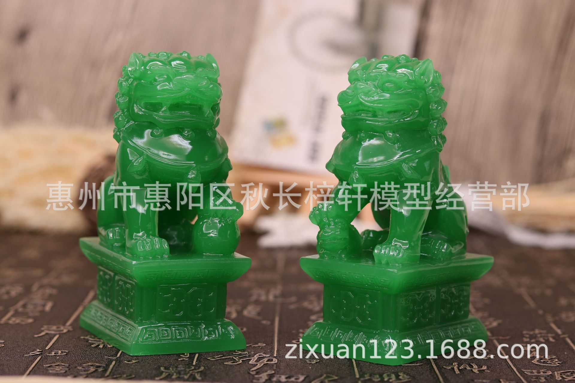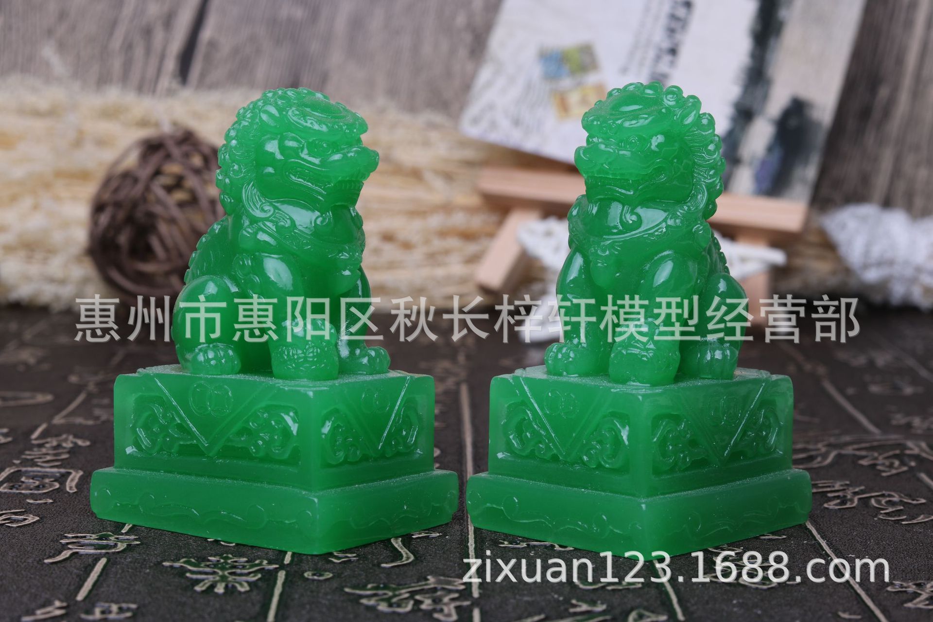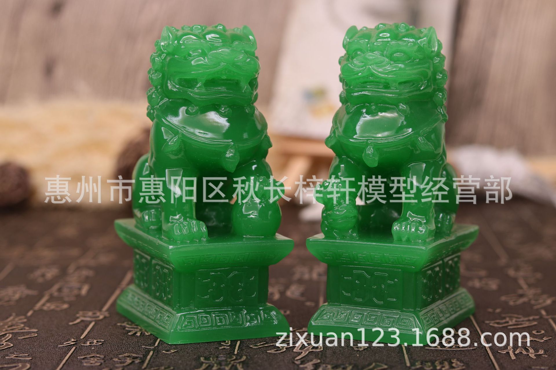 • 큰 녹색 옥 사자 한 쌍의 긴 9 폭 6 높이 16cm