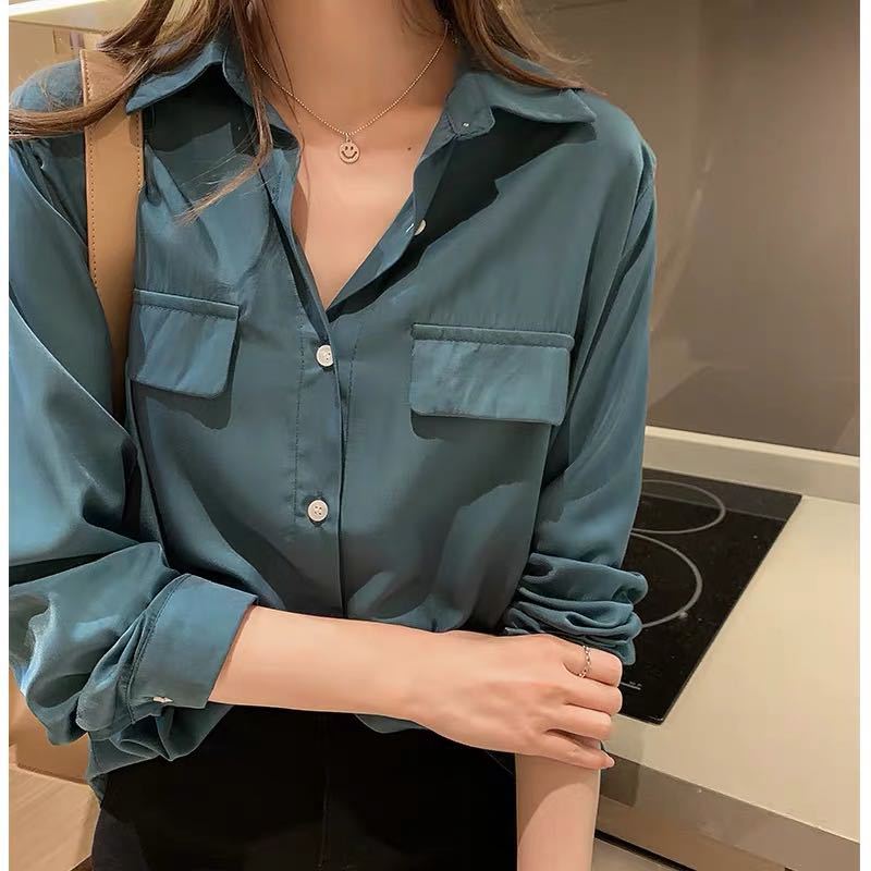 셔츠 여자의 2022 가을 새로운 디자인 감각 틈새 긴팔 탑 라이트 익은 외국 스타일 셔츠 베이스 셔츠 트렌디스토어 가기