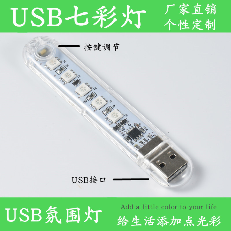 小名:USB七彩灯(七彩颜色调节+红蓝交替爆闪)