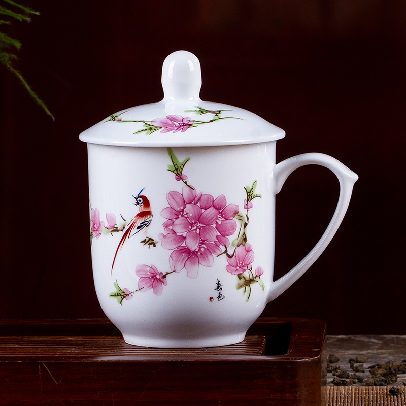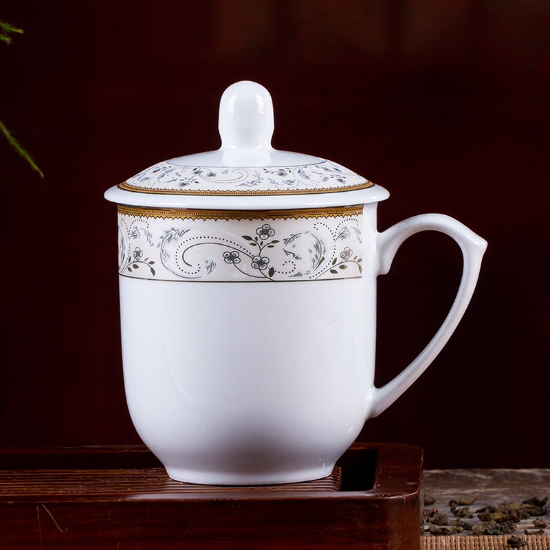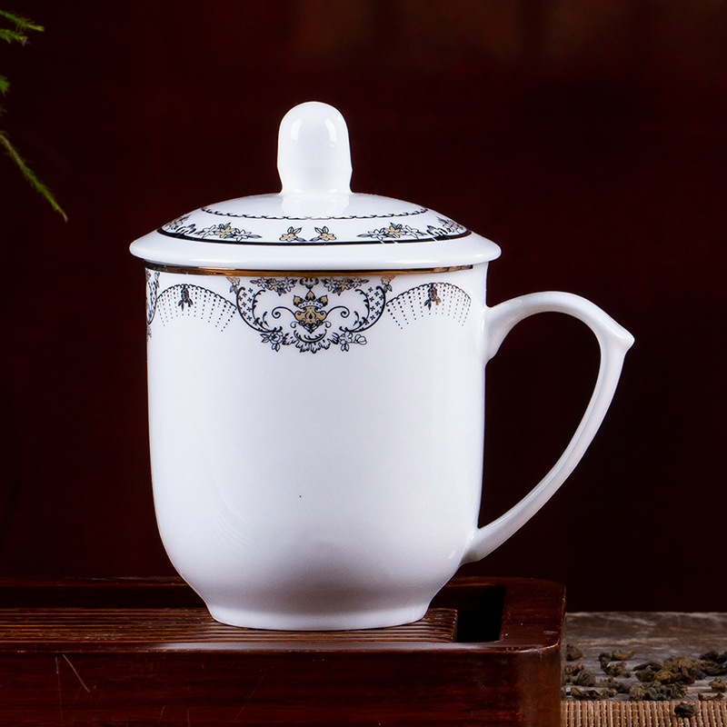 Jingdezhen 차 컵 세라믹 컵 뚜껑 창조적 인 세라믹 컵 사무실 회의 컵 도매 공장 할인스토어 가기