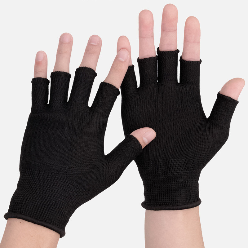 하프 핑거 내마모성 통기성 꽉 손 고탄성 노동 보호 여성용 장갑 얇은 남성용 보호 나일론 작업 정전기 방지 산업 차 따기