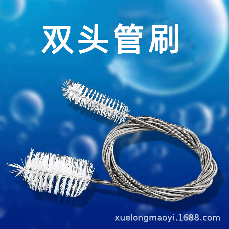 • 鱼缸清洁管刷 过滤桶水管双头毛刷90CM不锈钢弹簧清洁工具批发