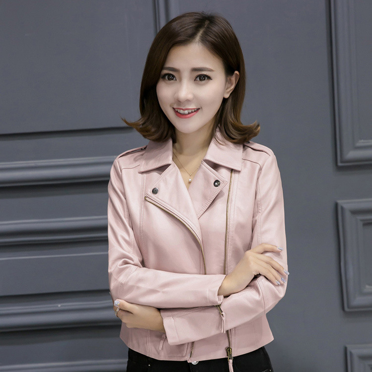 Haining 가죽 여성의 가죽 자켓 pu 오토바이 의류 여성의 짧은 새로운 여성의 슬림 코트의 장기 대규모 재고스토어 가기
