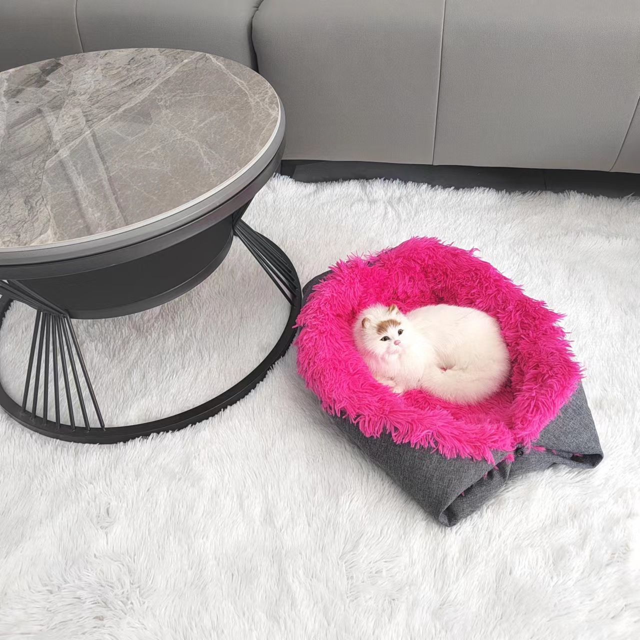 아마존 크로스 보더 새로운 겨울 깊은 수면 따뜻한 접이식 고양이 개집 긴 머리 패션 애완 동물 둥지 침대