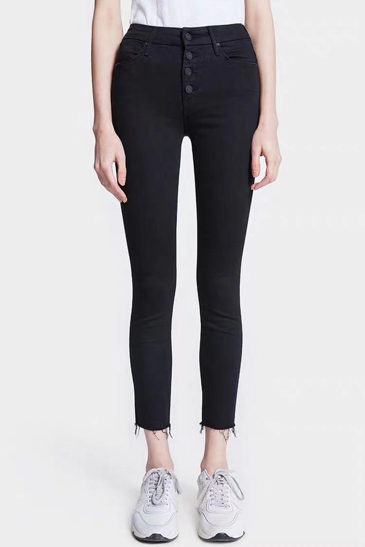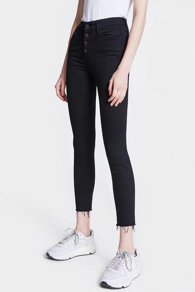 20 가을과 겨울 유럽과 미국 MO 하이 웨이스트 버튼 기모/없음 기모 슬림 9 점 생 가장자리 청바지 여성스토어 가기