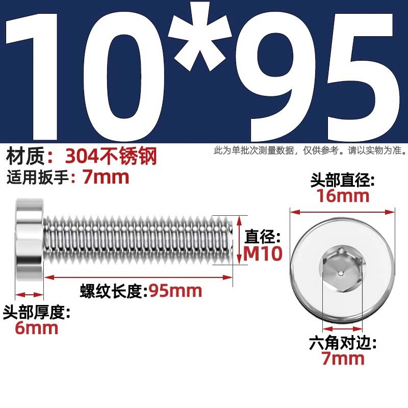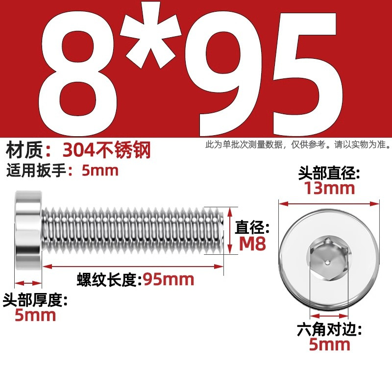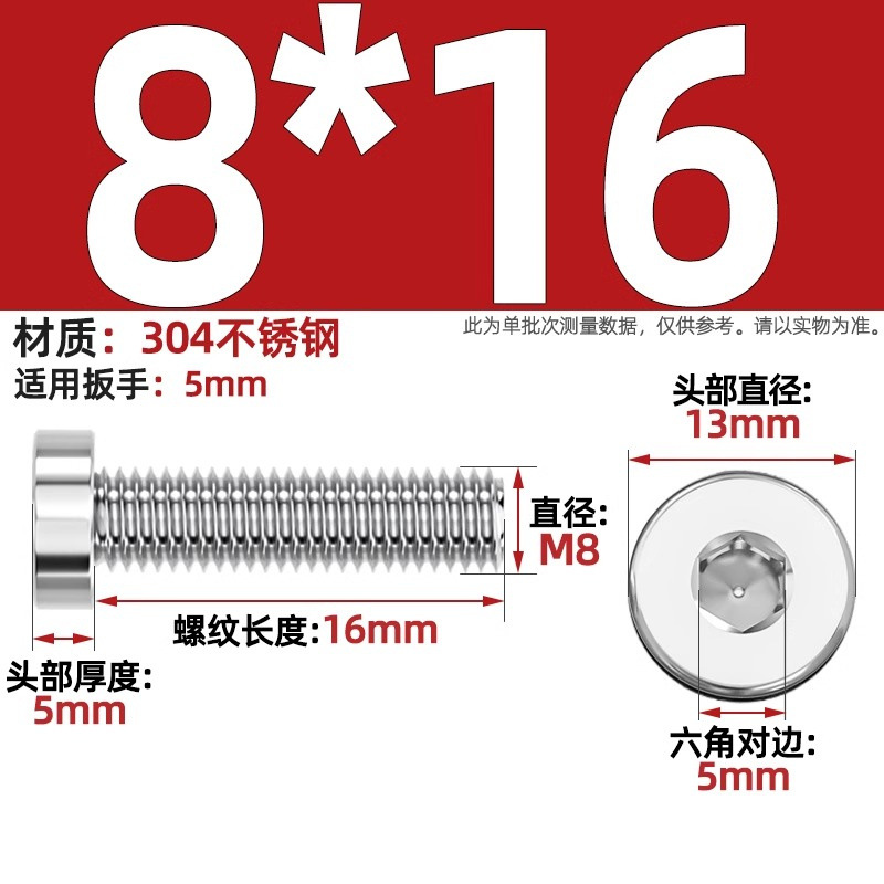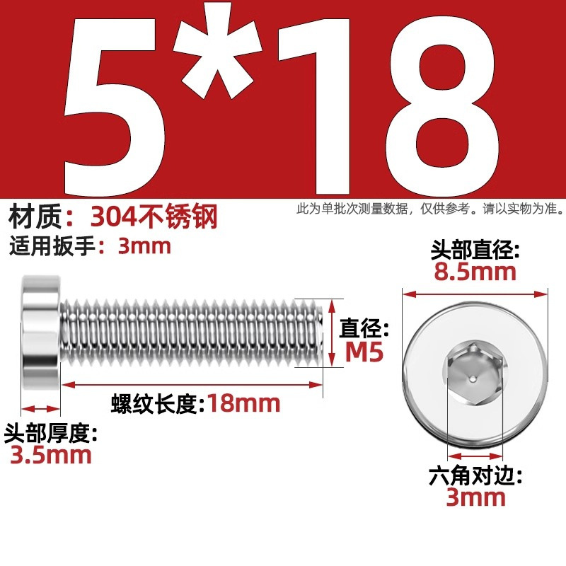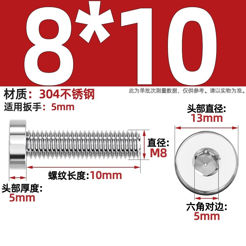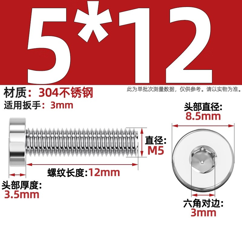 304 스테인레스 스틸 얇은 헤드 육각형 소켓 스크류 DIN7984 낮은 헤드 굴착 볼트 M3M4M5M6M8M10M12