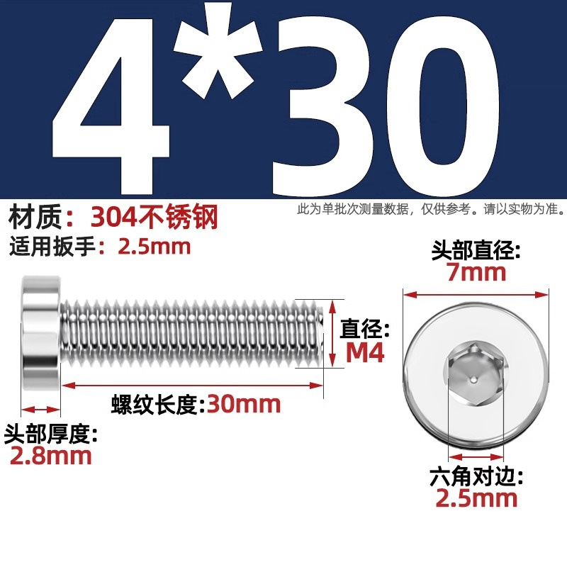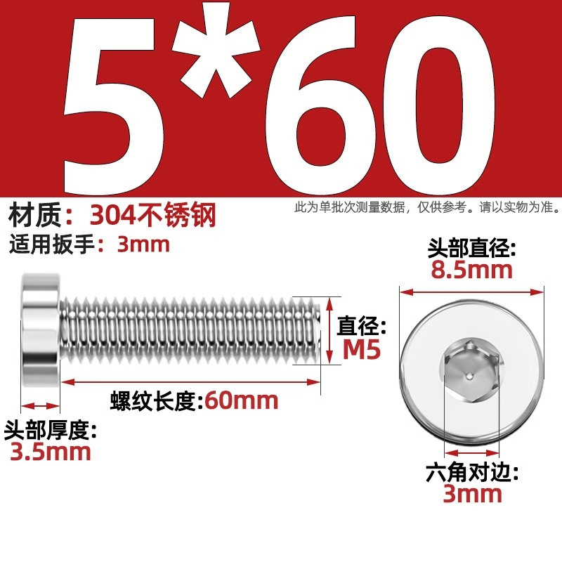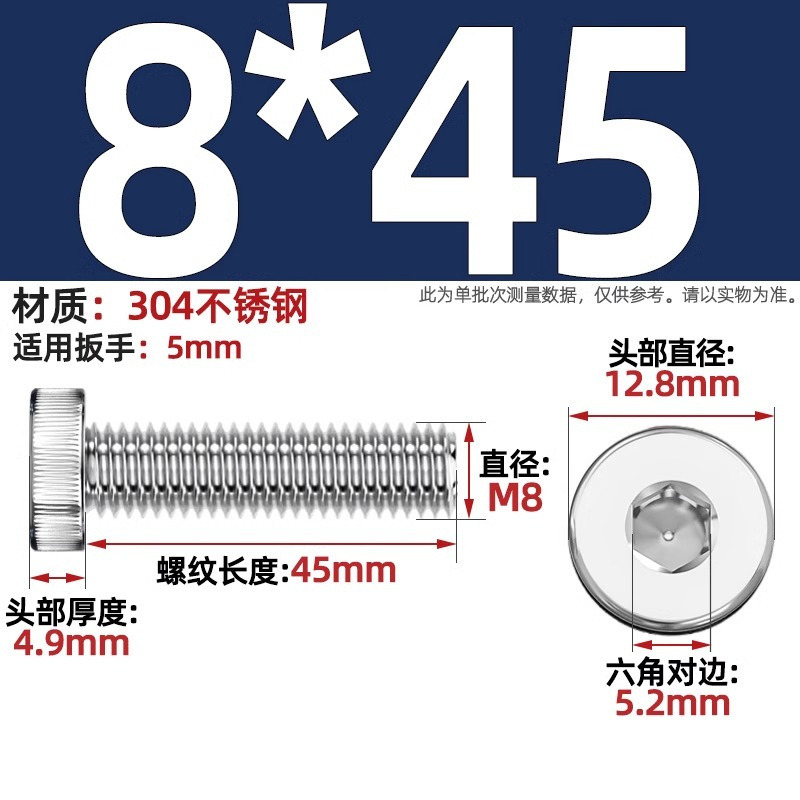 304 스테인레스 스틸 얇은 헤드 육각형 소켓 스크류 DIN7984 낮은 헤드 굴착 볼트 M3M4M5M6M8M10M12스토어 가기