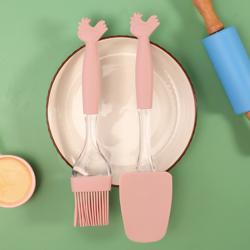 • 亚马逊硅胶铲焙儿童套装卡通动物手柄擀面杖辅食铲工具刮刀烧烤刷