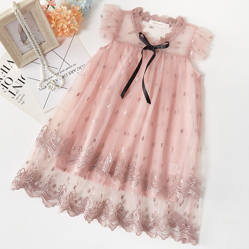 크로스 보더 새로운 여름 아동복 귀여운 공주 바람 어린이 원피스 자수 메쉬 투투 스커트 머리카락의 세대