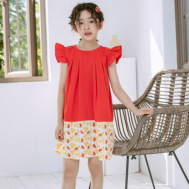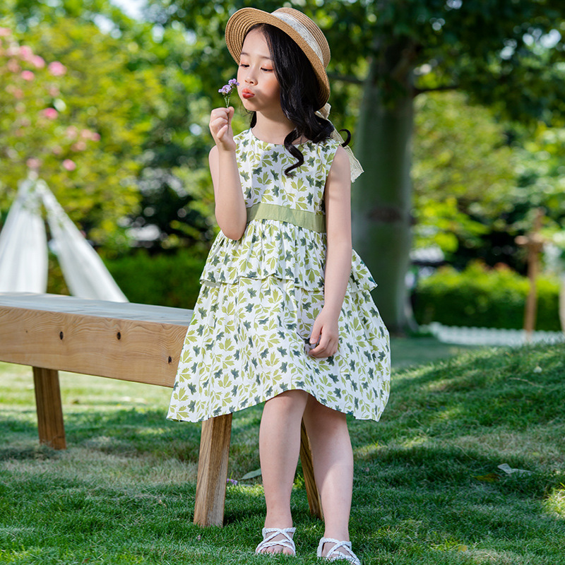 여름 아동복, 큰 아이들을 위한 꽃무늬 원피스, 여아용 드레스, 프릴 밑단, 원피스, 소매가 작은 날개 모양, 여름옷, 드레스, 원피스, 프릴 밑단, 여아용, 꽃무늬, 여름옷, 드레스, 원피스, 프릴 밑단