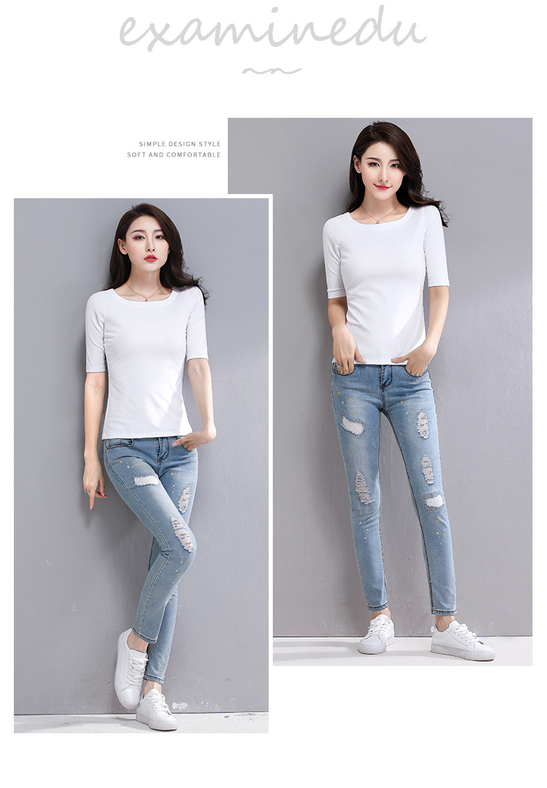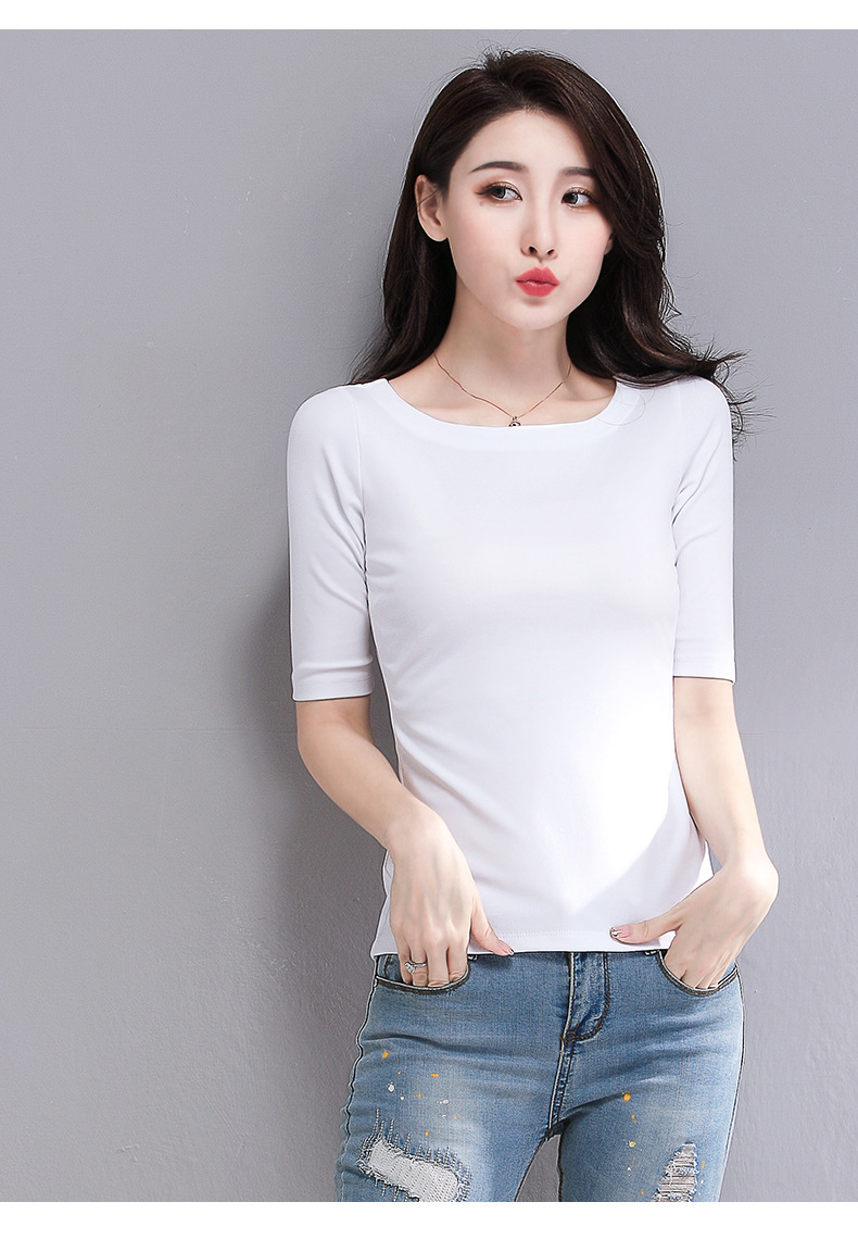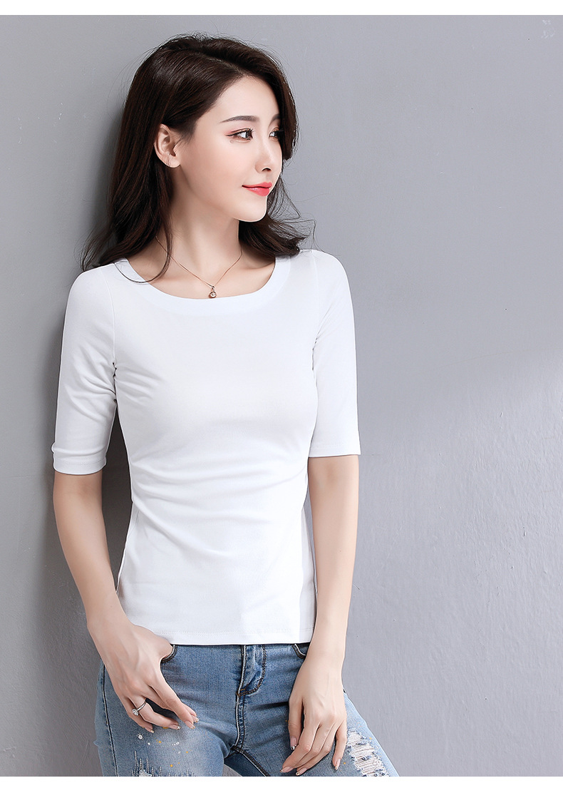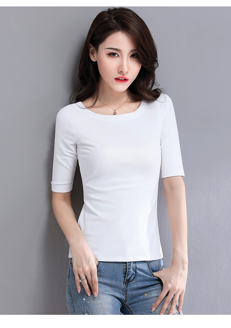 봄과 가을 티셔츠 여성용 내베이스 셔츠 슬림 핏 반소매 티셔츠 기질스토어 가기