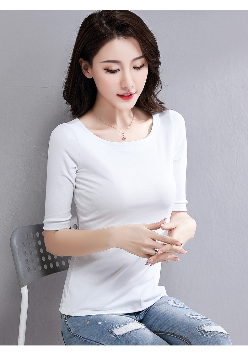 봄과 가을 티셔츠 여성용 내베이스 셔츠 슬림 핏 반소매 티셔츠 기질