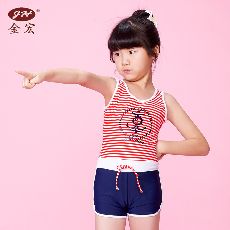 진 홍 어린이 수영복 네이비 새로운 달콤한 귀여운 소녀 원피스 플랫 수영복 네이비 스타일 수영복