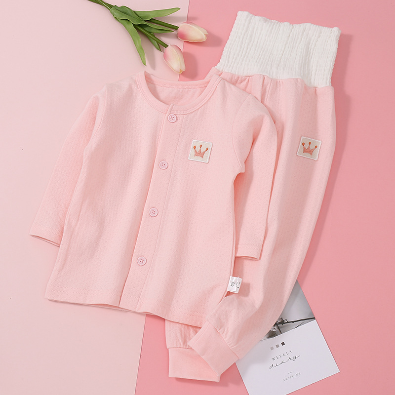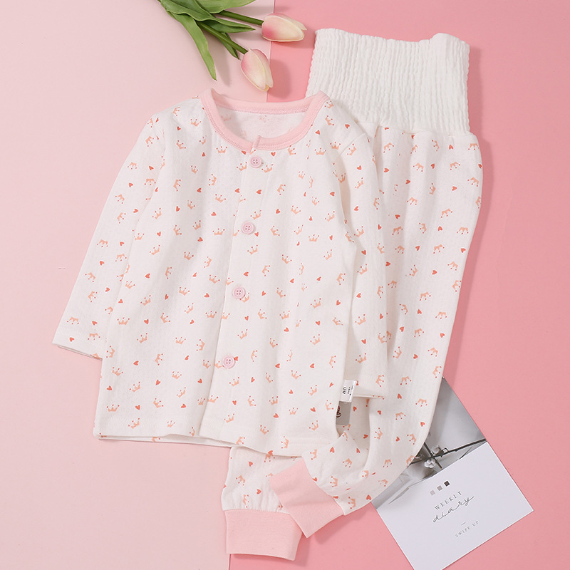 가을 어린이 의류 크라운 인쇄 빗질 면 배꼽 바지 세트 만화 인쇄 어린이 열 속옷