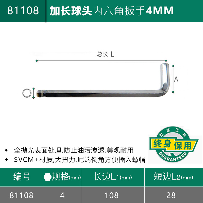 • 81108 확장 볼 헤드 알렌 렌치 4mm * 5*200