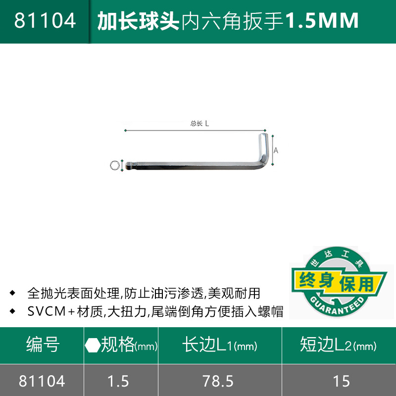 • 81104 길어진 볼 헤드 알렌 렌치 1.5mm * 5*200mm